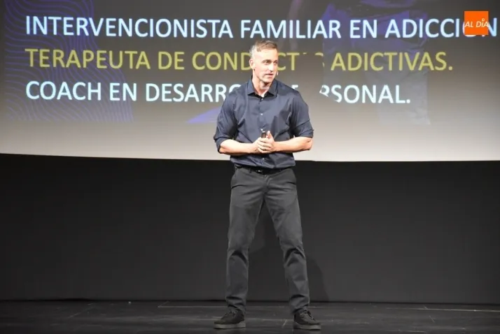 Tras haber llevado a cabo durante la mañana la sesión destinada a los alumnos de la ESO, Bachillerato y ciclos formativos de los centros educativos mirobrigenses, el técnico especialista en conductas adictivas y experto en coach personal y ejecutivo Javier Ortiz ofreció durante la tarde del viernes en el Teatro Nuevo Fernando Arrabal su sesión en torno a las adicciones destinada al público en general.