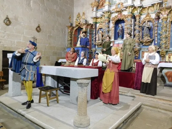 Y como su maestro Nebrija, también Juan del Encina fue una persona relevante en los siglos XV y XVI considerado como el iniciador y patriarca del teatro español además de uno de los exponentes de la polifonía religiosa y profana en España. La música que envuelve mágicamente este montaje es de este autor y se elevó, magistralmente interpretada, hasta el artesonado de la iglesia parroquial de San Pedro.