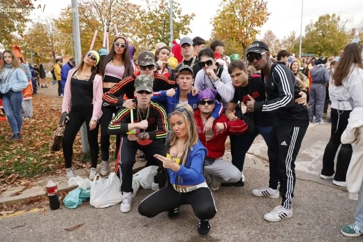 La comitiva, compuesta por estudiantes de diversas disciplinas, se dirigió a la Facultad de Ciencias para recoger a sus compañeros de grados como Geología, Informática, ADET (UPSA), Biotecnología, Física, Matemáticas y Estadística. La atmósfera era vibrante, con jóvenes disfrazados que aportaron un toque de color y creatividad a la celebración.