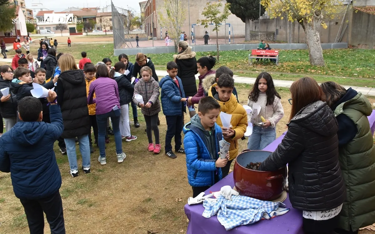 Hay que apuntar que cada alumno había llevado castañas para asar, a las que se sumaron 15 kilos comprados por la propia AMPA para que hubiera de sobra. Como es habitual, los alumnos fueron dando buena cuenta de las castañas, acercándose muchos de ellos a coger unas cuantas más para irlas comiendo en el mismo patio en una mañana nublada pero sin frío.