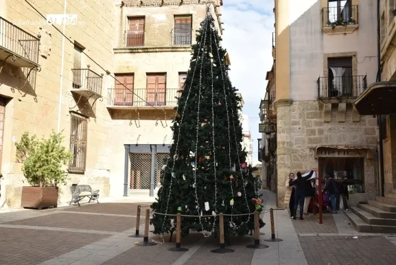 Este árbol ya ha sido levantado durante estos días, volviendo a ser colocados tanto las tiras de leds que lo adornan de arriba abajo, como los adornos creados por niños que se empezaron a situar en el mismo hace dos Navidades, tras proponerlo la Concejalía de Educación, Infancia y Familia del Consistorio.
