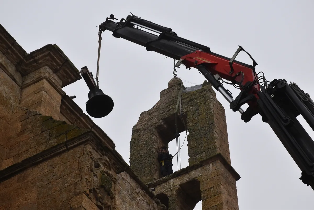 Una vez retirado el antiguo y colocado uno nuevo, la campana fue izada de nuevo para devolverla al campanario de la Iglesia, cuyas otras dos campanas no van a sufrir cambios, al ser sus yugos de hierro y por ende no entrañar peligro de rotura.
