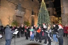 El corazón de la céntrica calle Madrid de Ciudad Rodrigo albergó durante la tarde del jueves, por tercer año consecutivo en los días previos a la Navidad, un concierto al aire libre de la Coral Renacer junto al gran árbol profusamente decorado para estas fiestas.