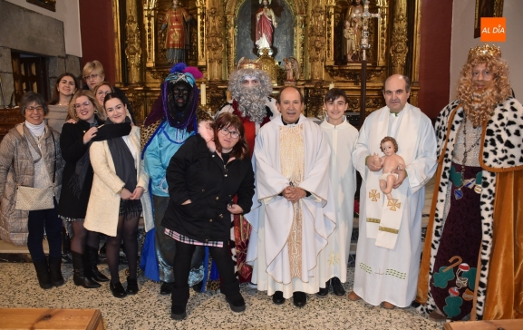 Durante la eucaristía, Melchor, Gaspar y Baltasar adoraron al Niño Jesús, algo que también hicieron los fieles en el tramo final de la celebración, que fue presidida por el párroco Tomás Muñoz Porras junto a Víctor Manuel Sevillano y un monaguillo, Fernando. Tras besar cada uno de los fieles la imagen del Niño, los Magos les fueron haciendo entrega de caramelos o bombones.