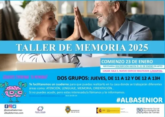 El Ayuntamiento de Alba de Tormes ha abierto la inscripción para la nueva edición del Taller de Memoria, una actividad destinada a mejorar las habilidades cognitivas mediante dinámicas y ejercicios diseñados específicamente para este propósito. Las sesiones se llevarán a cabo todos los jueves, con dos horarios disponibles: de 11:00 a 12:00 y de 12:00 a 13:00, en la Sala 5 del Edificio Multiusos.