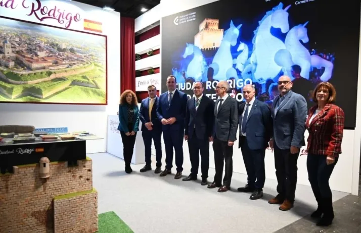El presidente de la Diputación de Salamanca, Javier Iglesias, se pasó en la mañana del viernes por el stand de Ciudad Rodrigo en la Feria Internacional de Turismo de Madrid (FITUR), mostrando su apoyo –según resalta el Ayuntamiento mirobrigense- al lema ‘Ciudad Rodrigo, Ciudad Teatro’ que se ha empezado a difundir en esta Feria. Acompañado de varios diputados provinciales como David Mingo, Javier Iglesias fue recibido por el alcalde Marcos Iglesias, el teniente de alcalde Ramón Sastre y la edil de Turismo, Belén Barco.