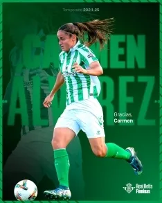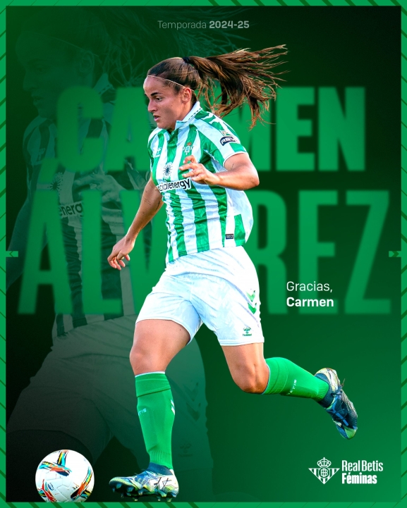 El Real Betis Féminas anunció en la sobremesa del lunes a través de sus redes sociales que el Club y la jugadora mirobrigense Carmen Álvarez Sánchez han decidido poner fin de mutuo acuerdo al contrato que los unía hasta el final de la presente temporada 2024/2025.
