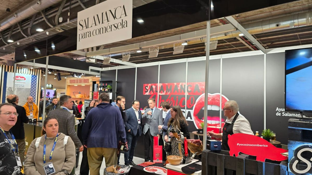 El estand 'Salamanca Para Comérsela' se convirtió en escaparate de los productos locales, con presencia de ibéricos, vinos, quesos y hornazos de la provincia. Marcas como La Hoja del Carrasco, Ibéricos Montellano y FISAN representaron la calidad de los productos salmantinos.