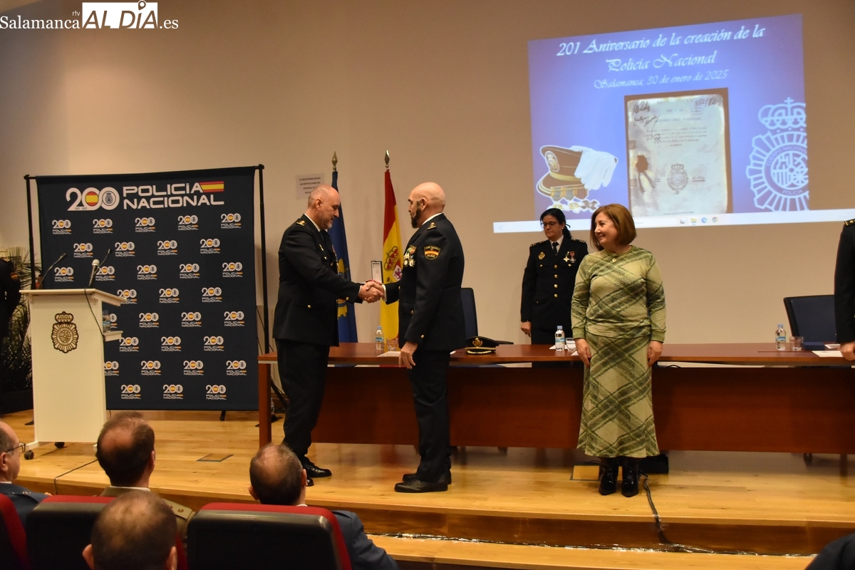La Policía Nacional ha celebrado su 201 aniversario con un acto institucional en el que se ha reconocido la labor de sus agentes e instituciones colaboradoras con el cuerpo. La ceremonia ha estado presidida por la Subdelegada del Gobierno, Rosa Alonso López, junto al Comisario Jefe Provincial, Claudio Javier Díaz Serrano, quienes han encabezado el homenaje a los hombres y mujeres que forman parte de la Policía Nacional.