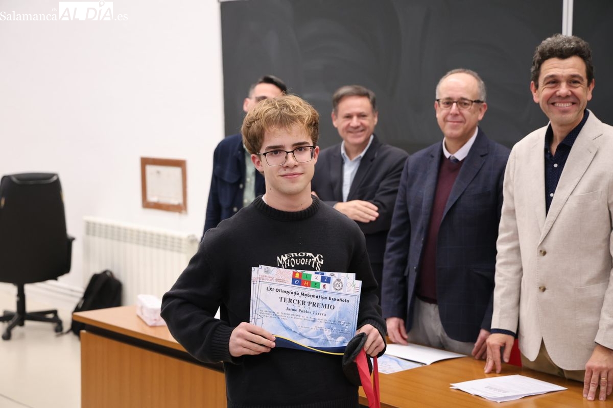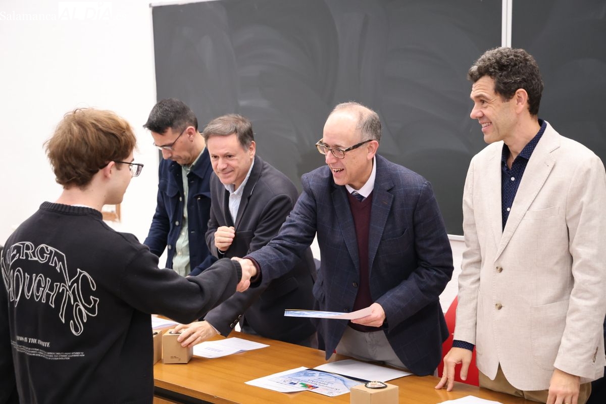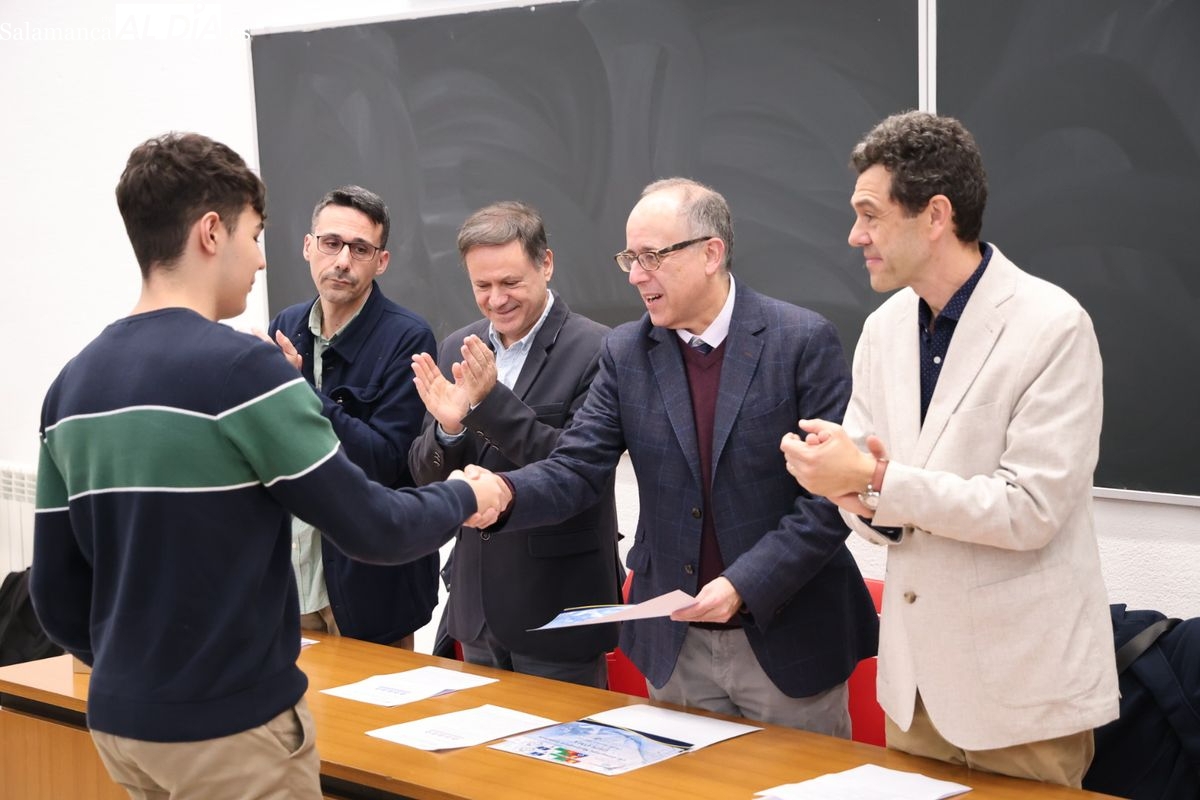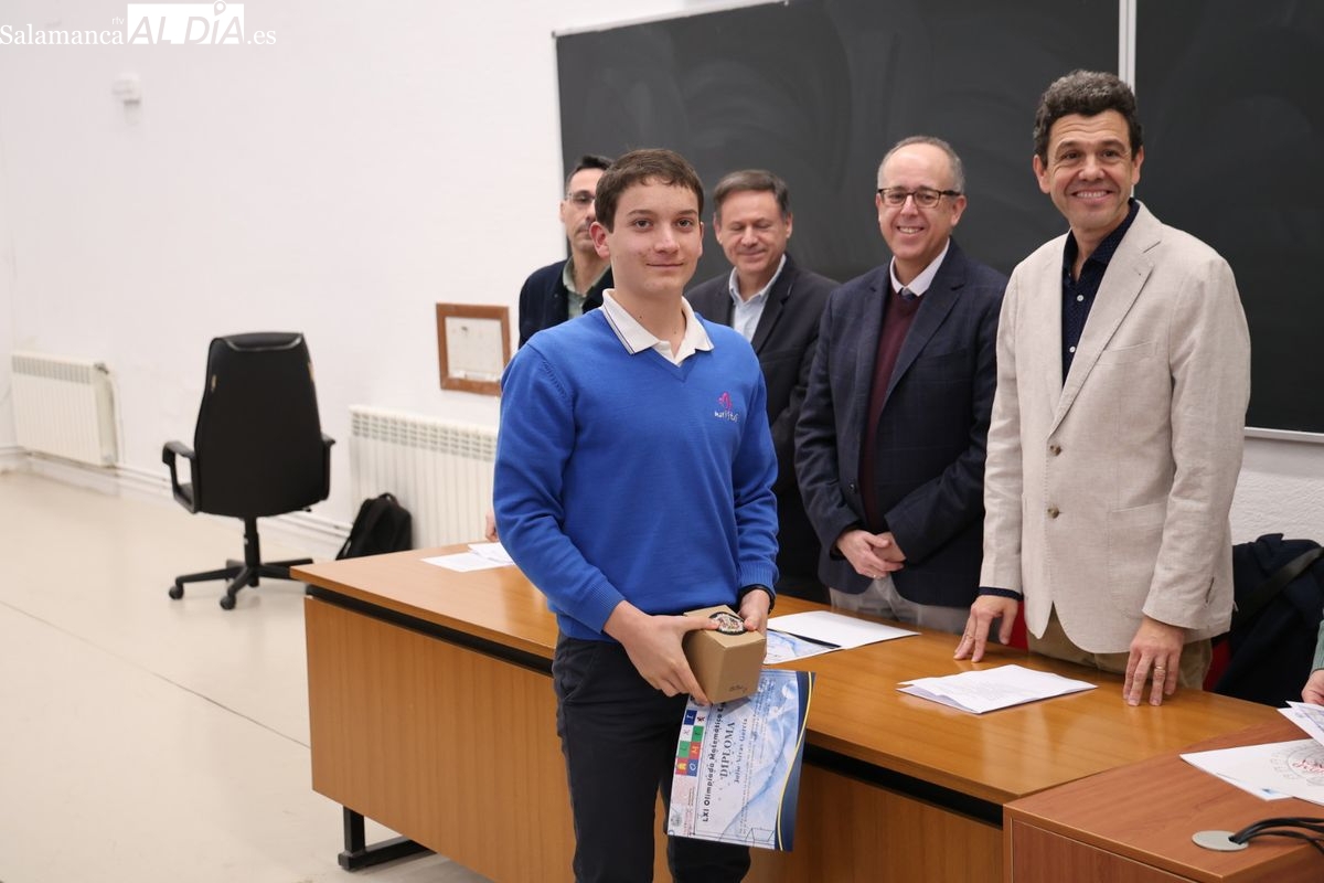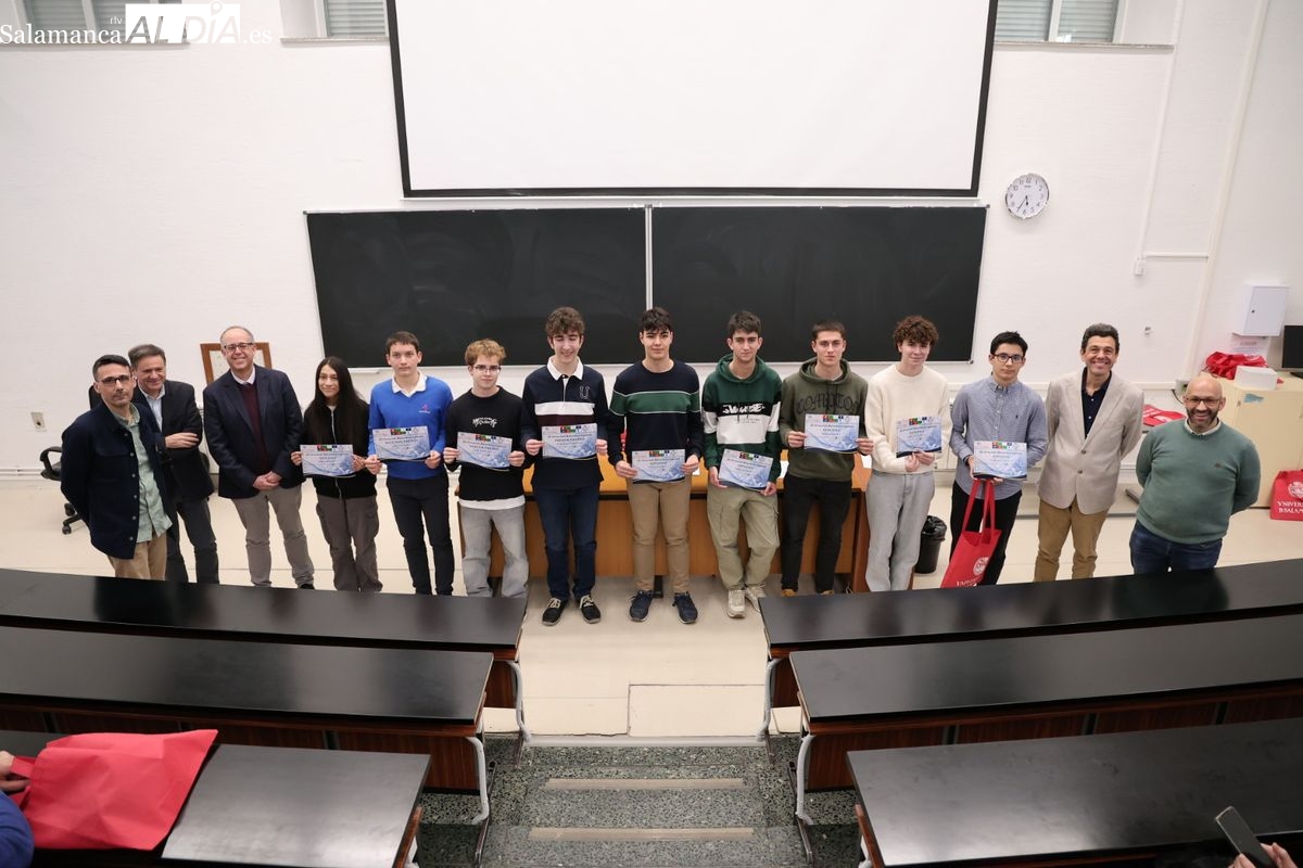 La Facultad de Ciencias. de la Universidad de Salamanca ha acogido este jueves la entrega de premios de la fase local de la Olimpiada Matemática a los estudiantes de Bachillerato y ESO. Los tres primeros premios son los finalistas a la fase autonómica.