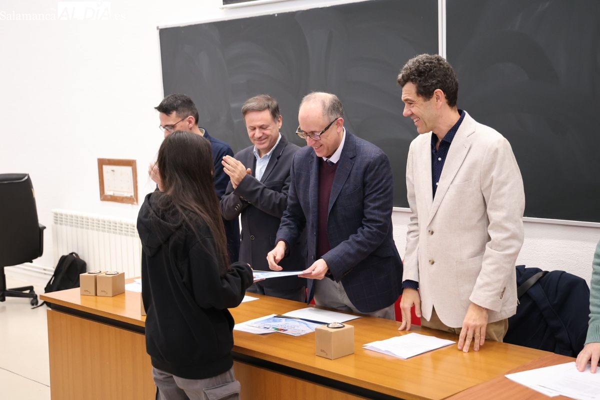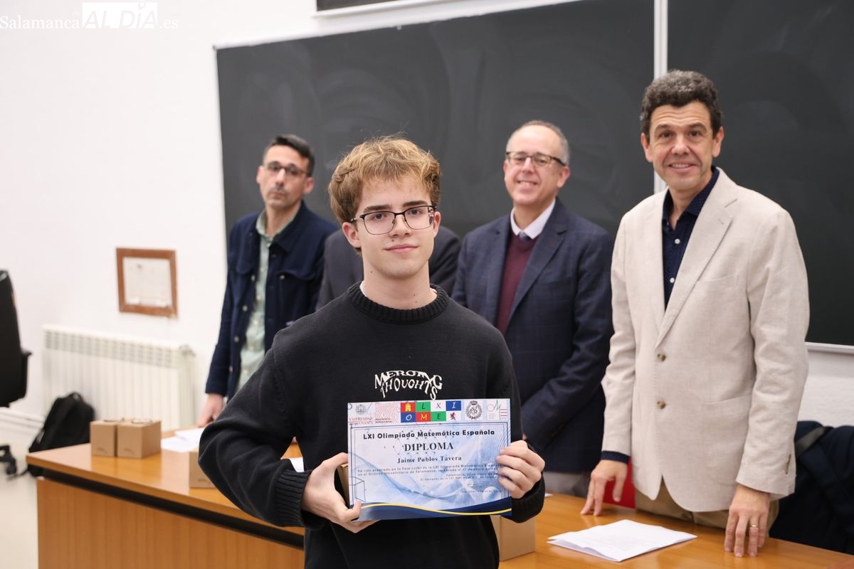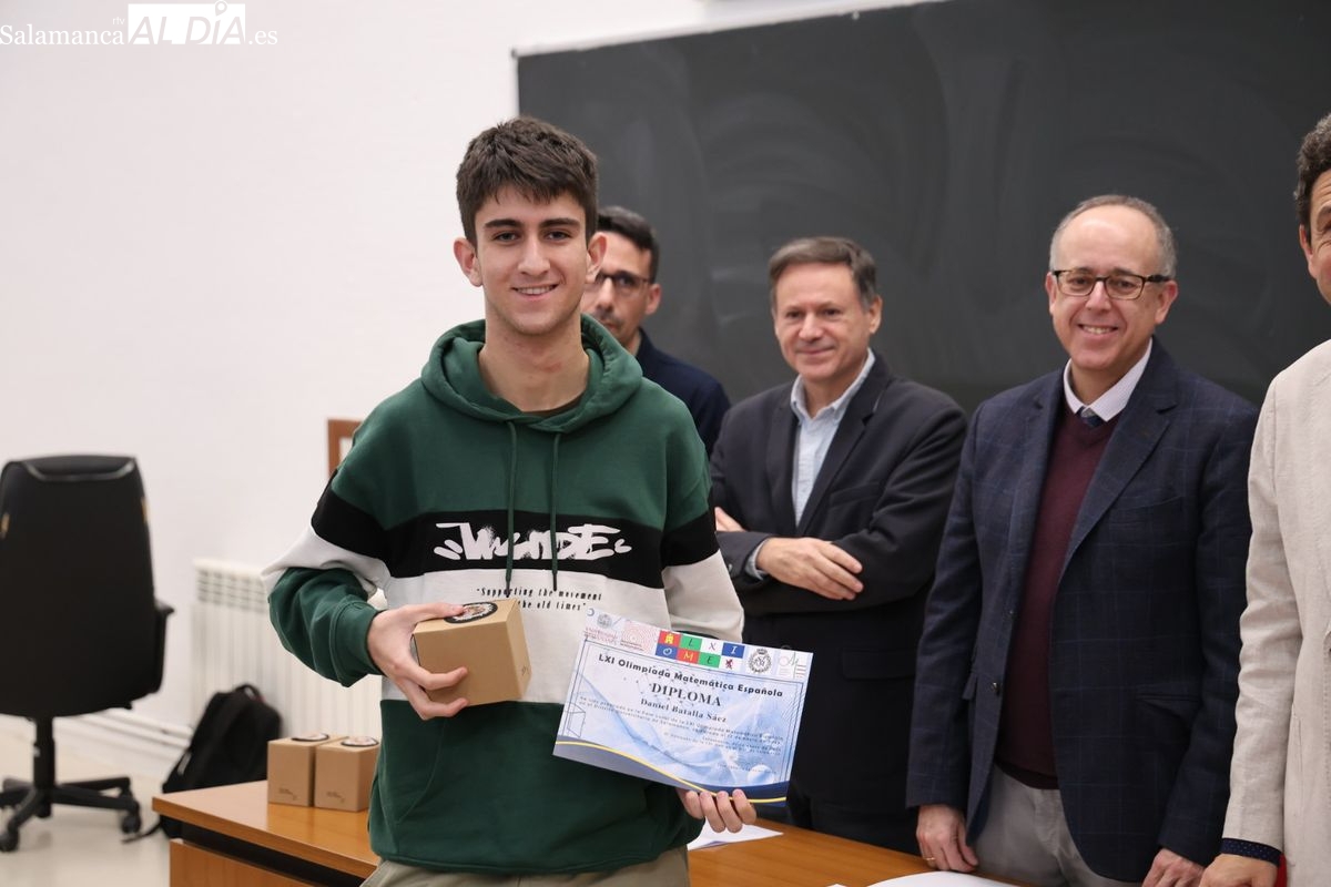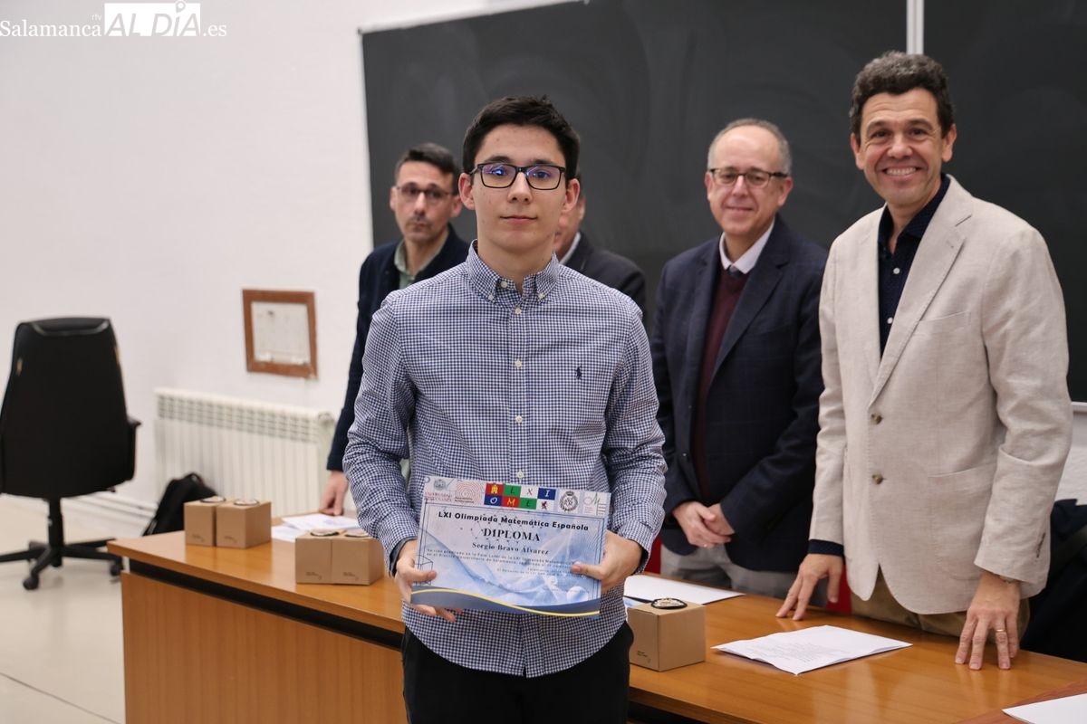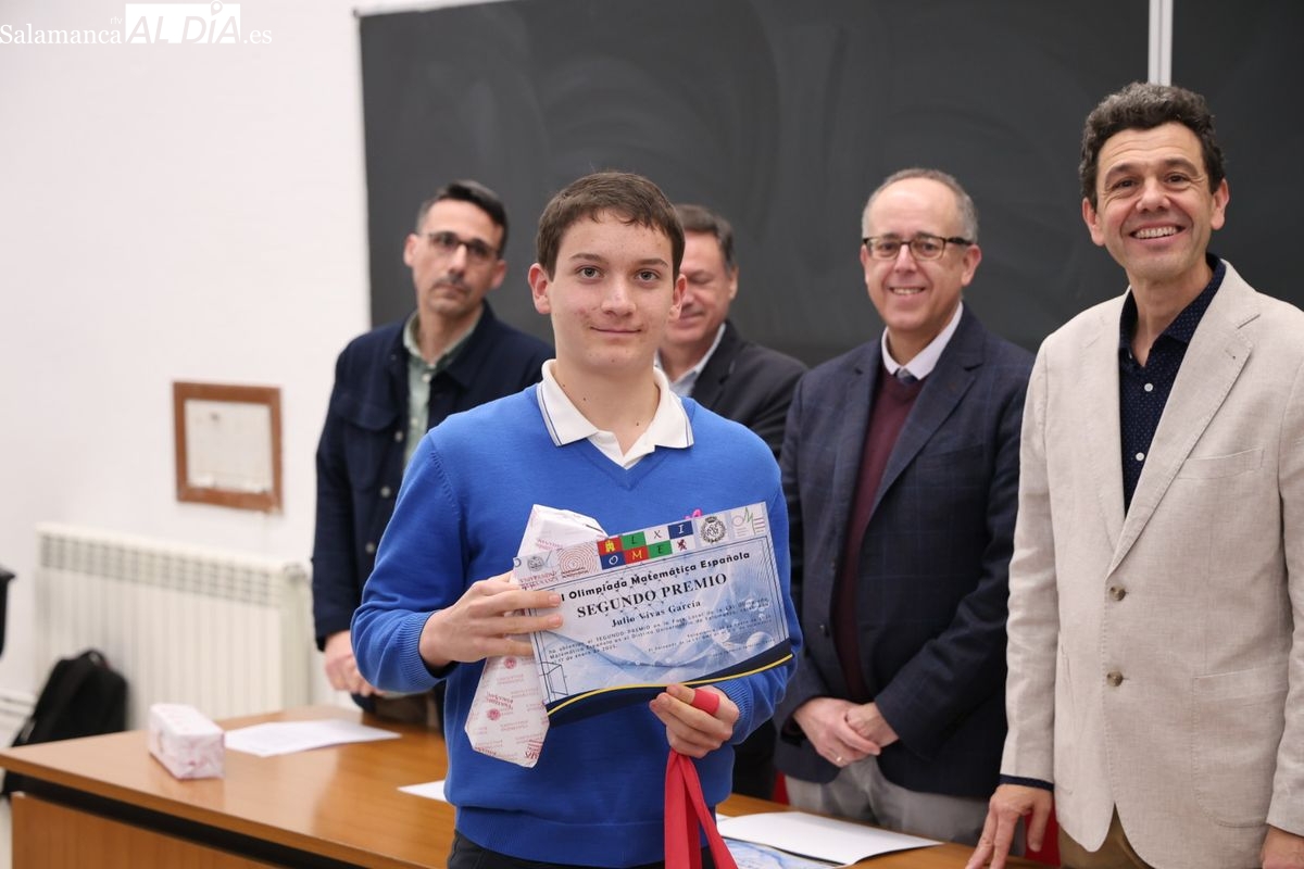 La Facultad de Ciencias. de la Universidad de Salamanca ha acogido este jueves la entrega de premios de la fase local de la Olimpiada Matemática a los estudiantes de Bachillerato y ESO. Los tres primeros premios son los finalistas a la fase autonómica.
