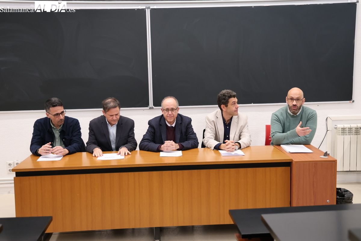 Al acto han acudido el vicerrector de Investigación, José Miguel Mateos Roco; el decano de la facultad, Antonio Miguel Martínez Graña; el director del departamento de Matemática Aplicada, Ángel María Martín del Rey; y el secretario del departamento de Matemáticas, Pablo Miguel Chacón.