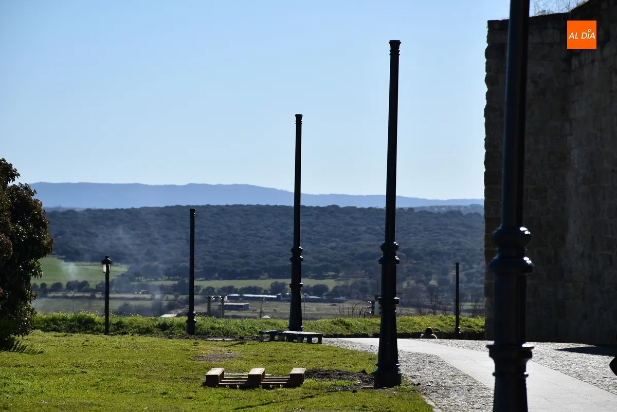 El tramo del Paseo Fernando Arrabal de Ciudad Rodrigo comprendido entre la Puerta del Sol y el Cuerpo de Guardia de San Pelayo dio la bienvenida en la jornada del viernes a la mayor parte de sus nuevas farolas, que toman el relevo en el lateral izquierdo del Paseo de los bolardos de luz existentes hasta ahora, que se ha decidido retirar por estar al alcance de actos vandálicos y por no ser eficiente su forma de iluminar, además de contaminar el cielo nocturno.
