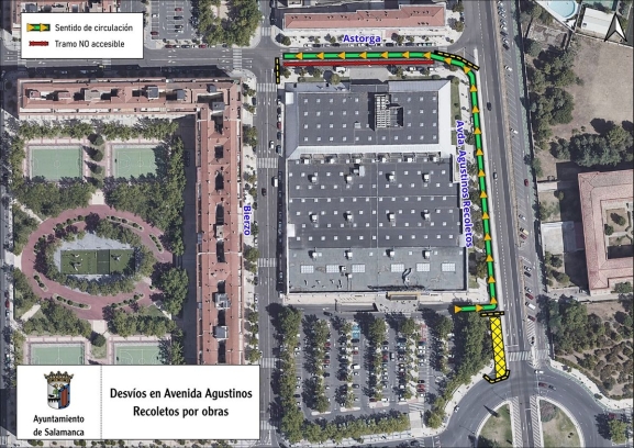 En concreto, se verá afectado el tramo de la vía de servicio comprendido entre la salida del centro comercial y la glorieta Ruta de la Plata. Por este motivo, la salida del aparcamiento del hipermercado se realizará hacia la izquierda, en sentido contrario de la circulación, y en dirección a la calle Astorga, en la que se establece un único sentido de circulación.