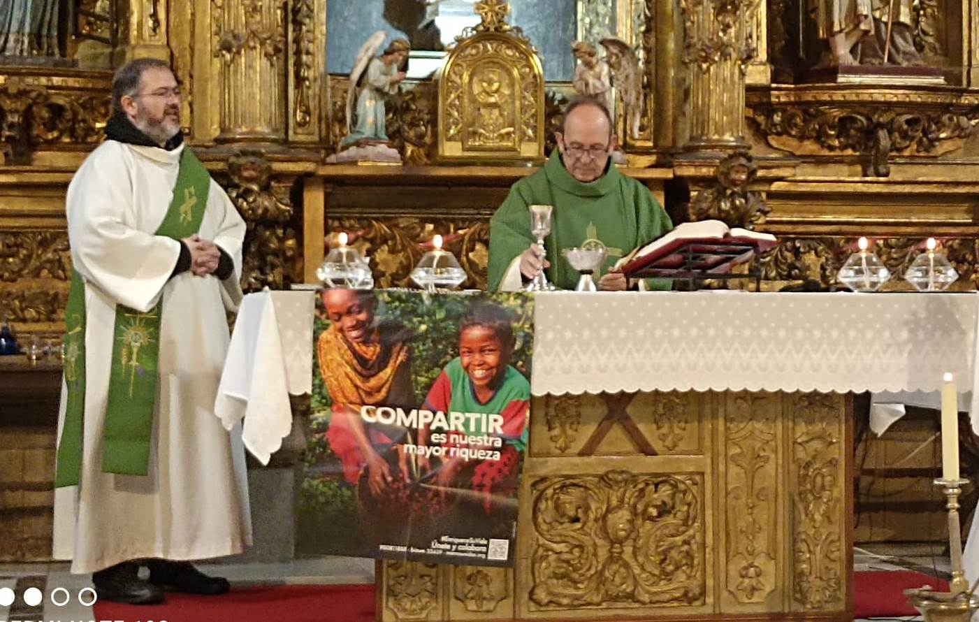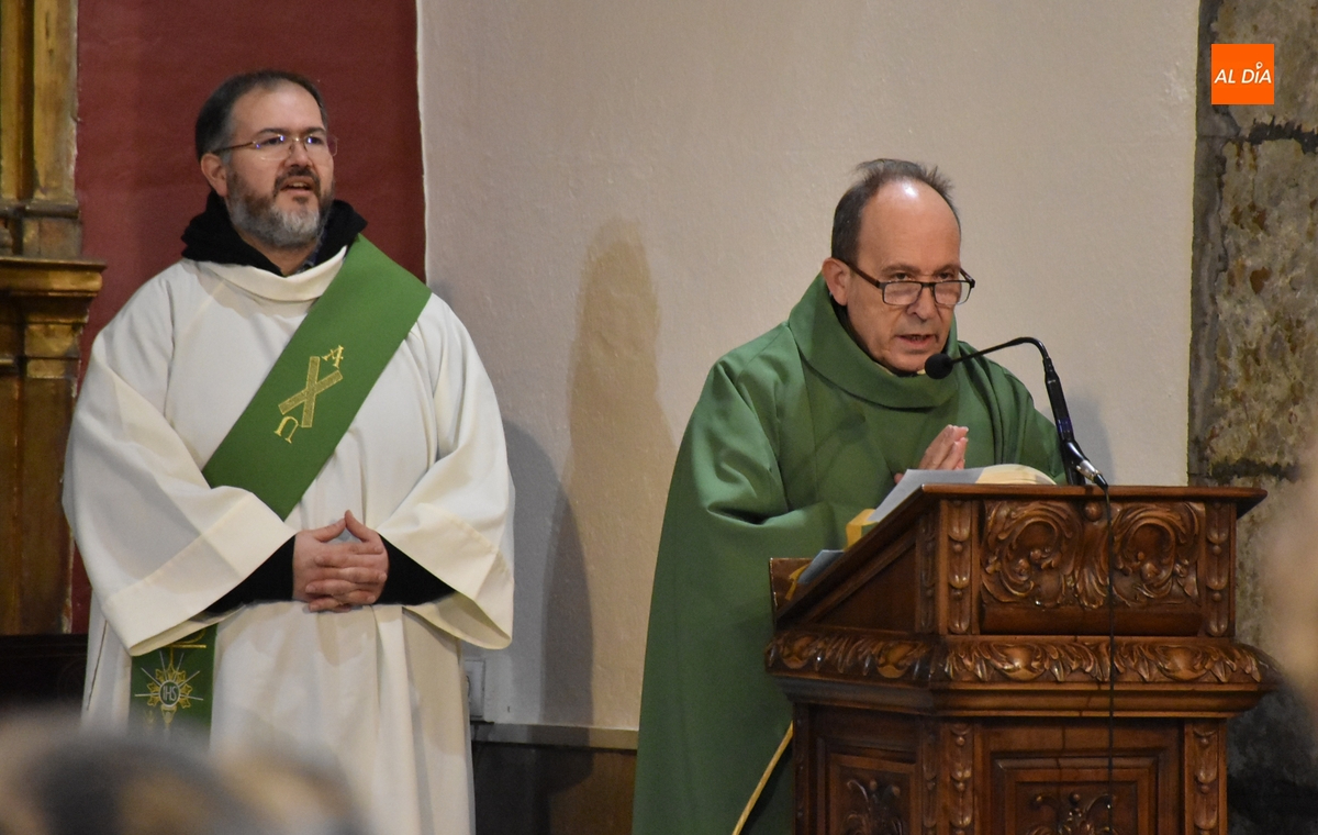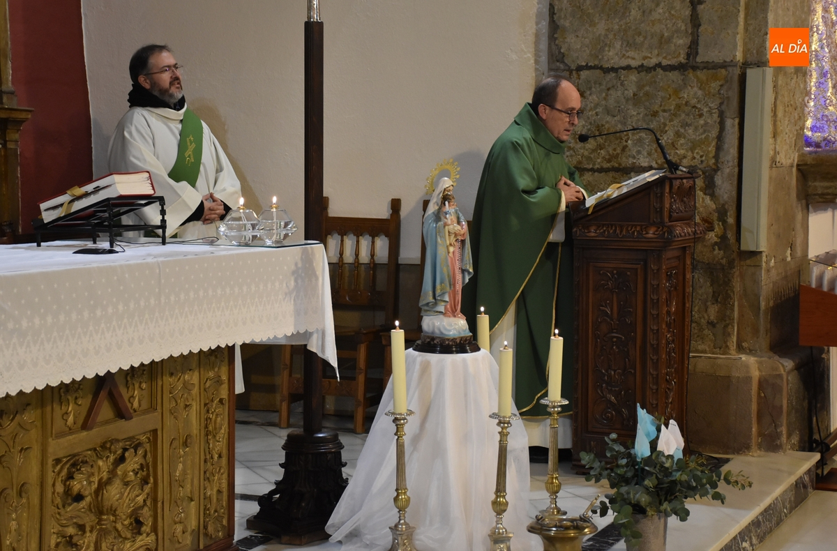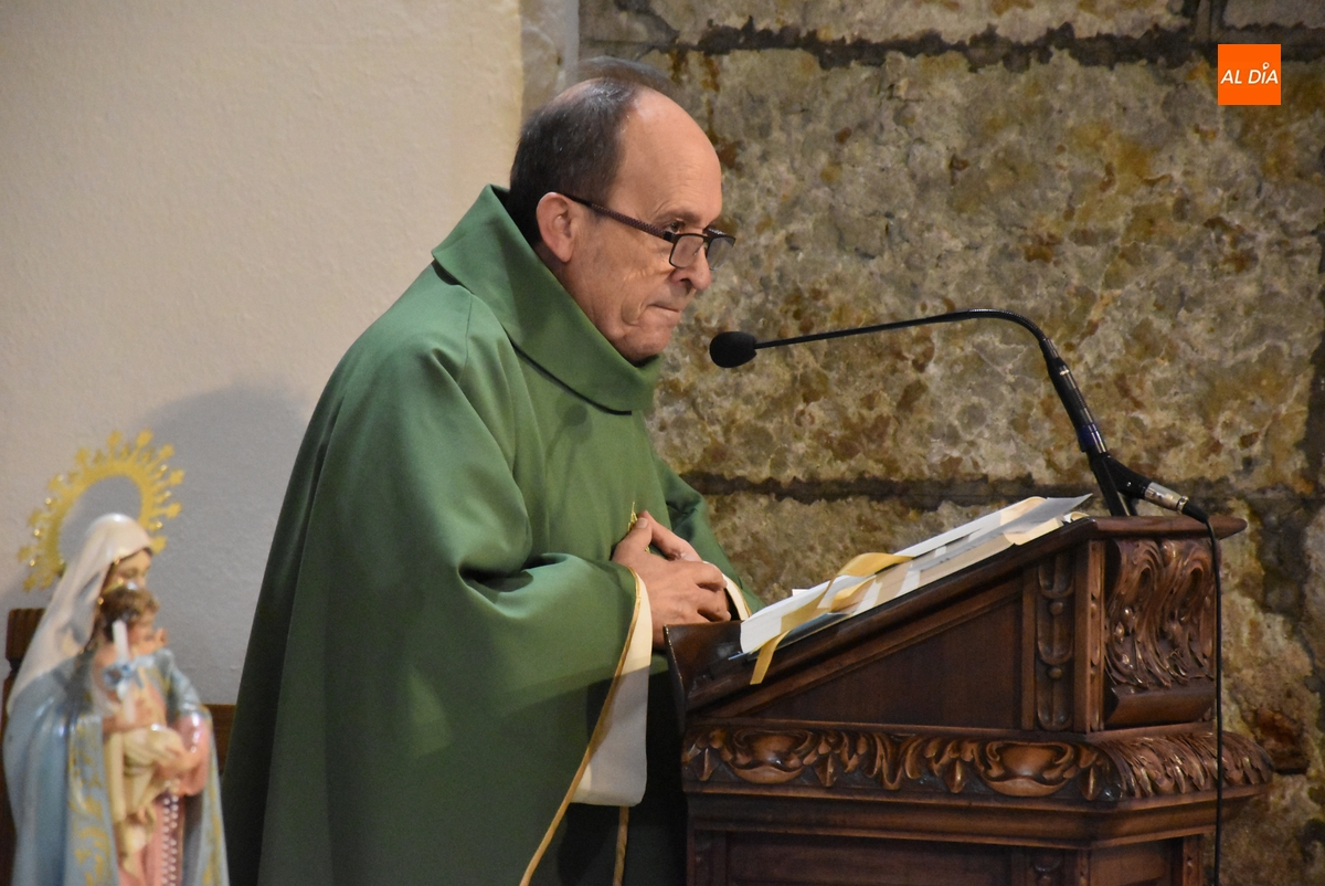 Durante la eucaristía presidida por el párroco, Tomás Muñoz Porras (junto al diácono Daniel Mielgo), se pidió por la gente que siente “hambre espiritual” y está alejada de la fe, por los pobres y por quienes trabajan con ellos, y por los asistentes para que no teman los malos momentos y sigan a Dios para conseguir el desino universal de los bienes y llegar al bien común.