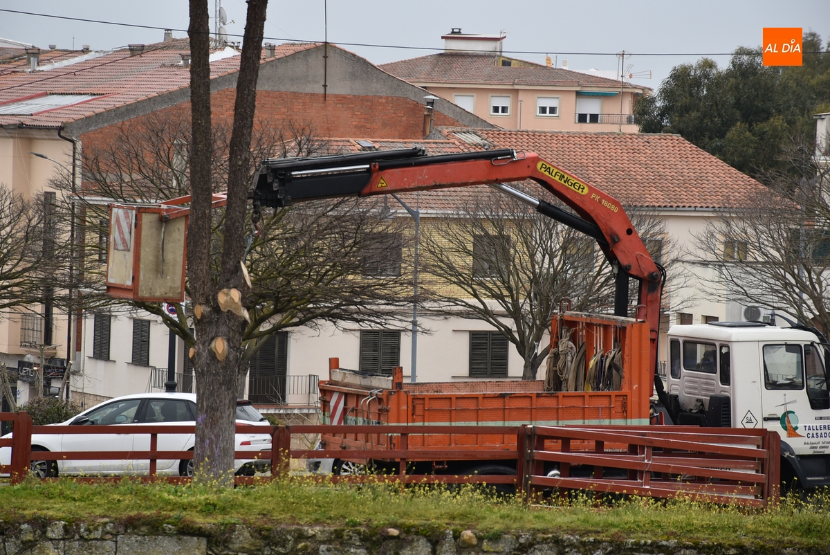 Dentro de los preparativos carnavaleros que se están llevando a cabo estos días, operarios de Electricidad Casado están instalando la iluminación adicional de la que es dotada la zona de los pinos para facilitar tanto el desarrollo como el seguimiento de los desencierros de las tardes.