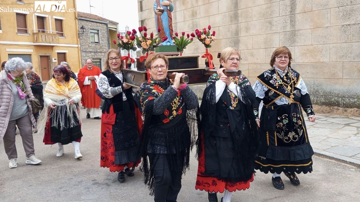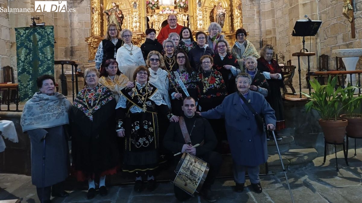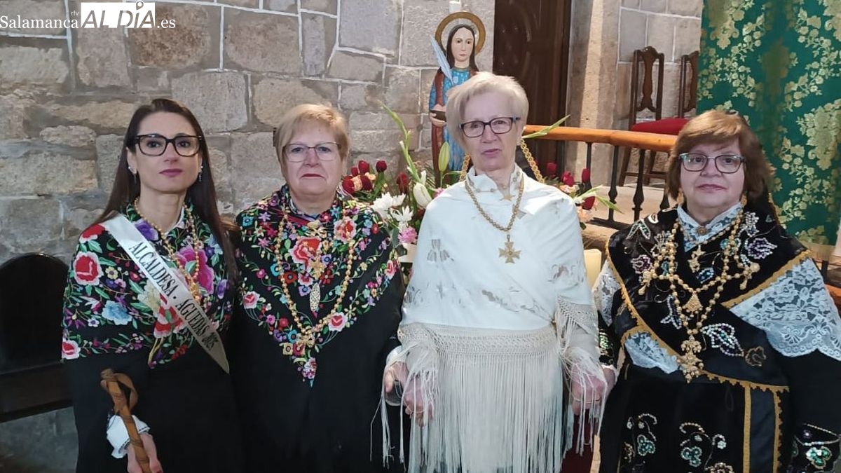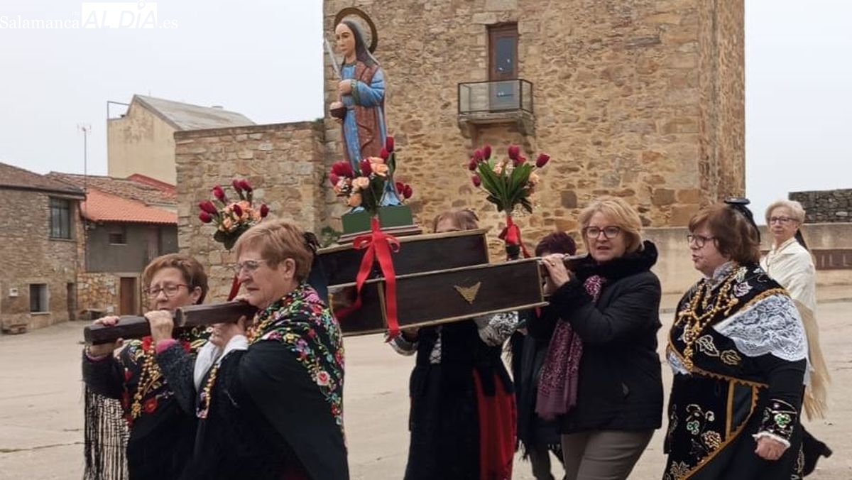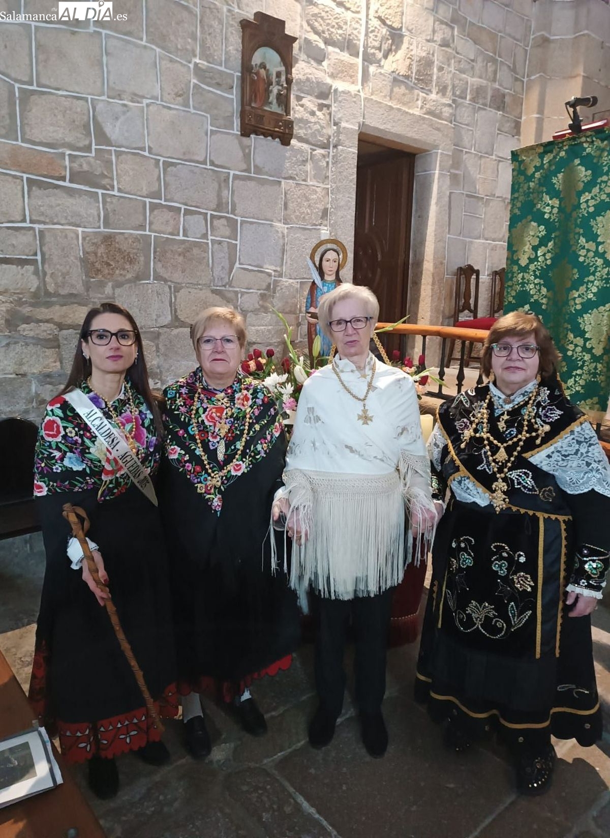 Después de este acto, llegó el momento de honrar a Santa Águeda con una misa en la iglesia parroquial, oficiada por el párroco, José Sánchez Arroyo, a la que seguiría una procesión con la imagen de la Santa, acompañada de la música de gaita y tamboril tocada por el tamborilero local Álvaro Simón. Al término de la celebración religiosa, en la Plaza del pueblo las Águedas ofrecieron un convite -dulces, flores y aguardiente- a los vecinos acompañantes, convite amenizado con bailes charros y cantos al son de la gaita y el tamboril.