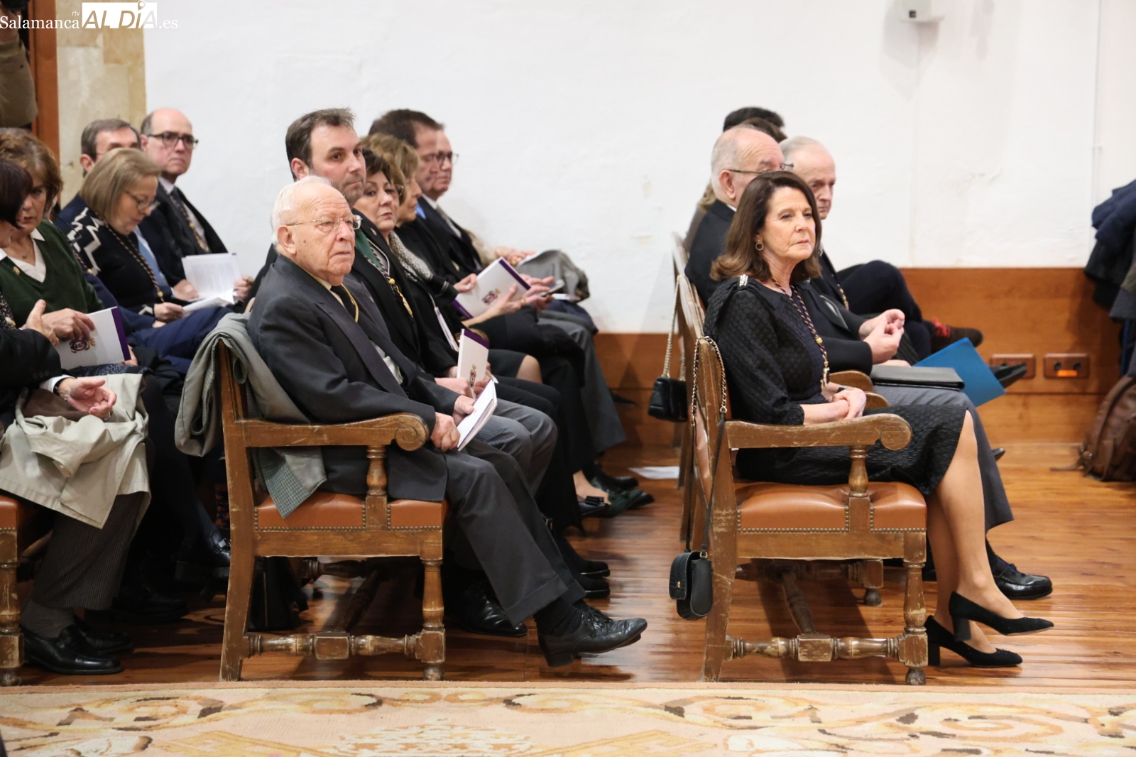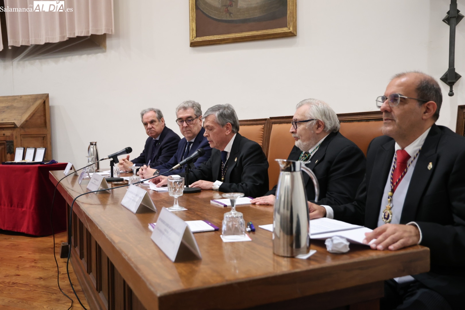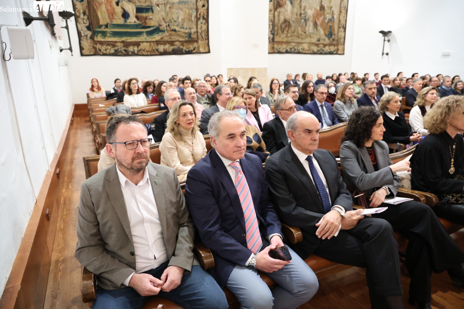 La Academia de Farmacia de Castilla y León celebró este viernes 7 de febrero, en el Aula Salinas de la Universidad de Salamanca, el solemne acto de apertura del Curso Académico 2025. Durante la ceremonia, se otorgó la Medalla de Honor de la Academia a los prestigiosos científicos D. Mariano Esteban Rodríguez y D. Juan Tamargo Menéndez, en reconocimiento a su trayectoria. Asimismo, se nombró Presidente de Honor al Excmo. Sr. D. Carlos Gómez Cangua-Arguelles.