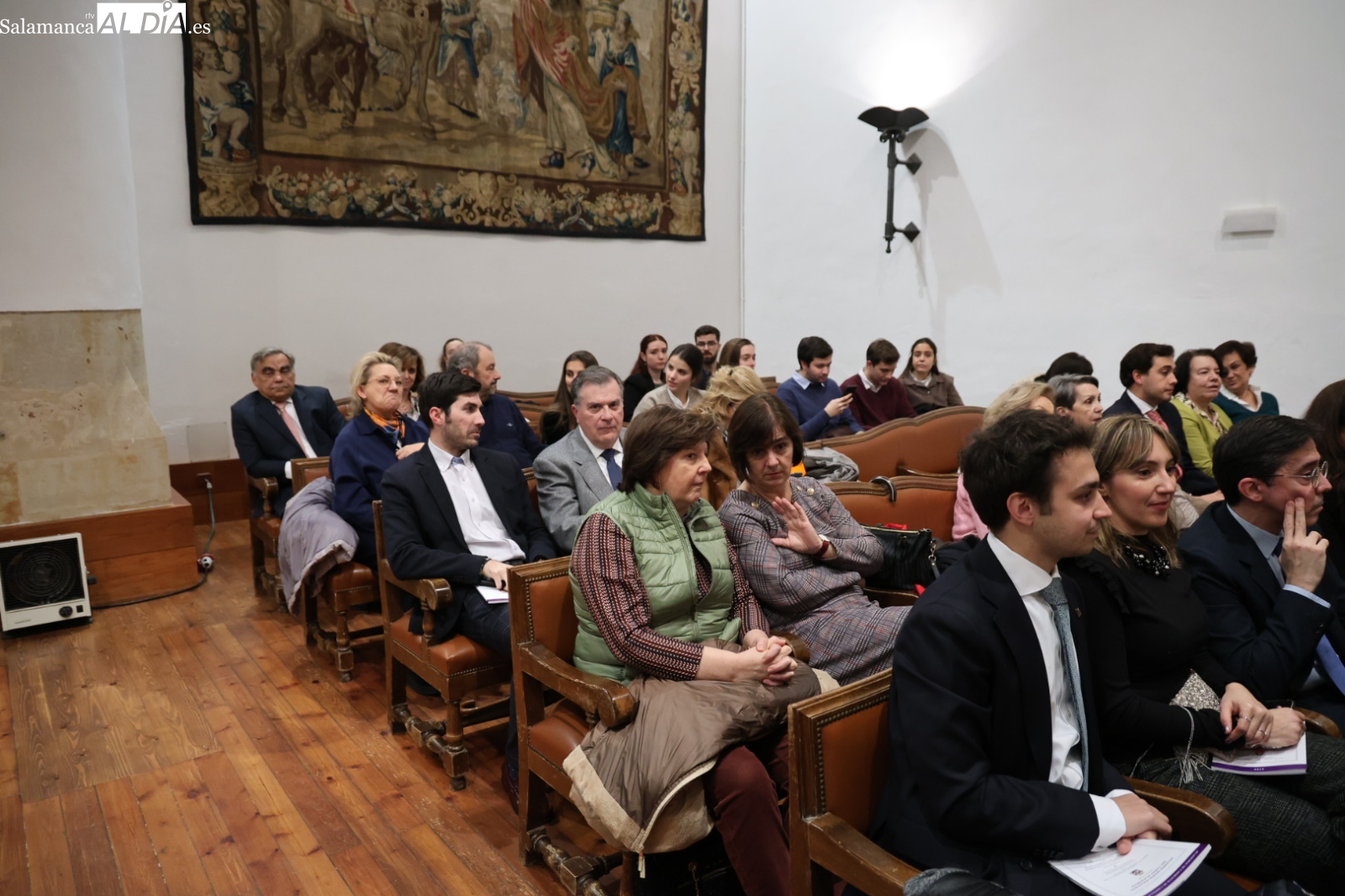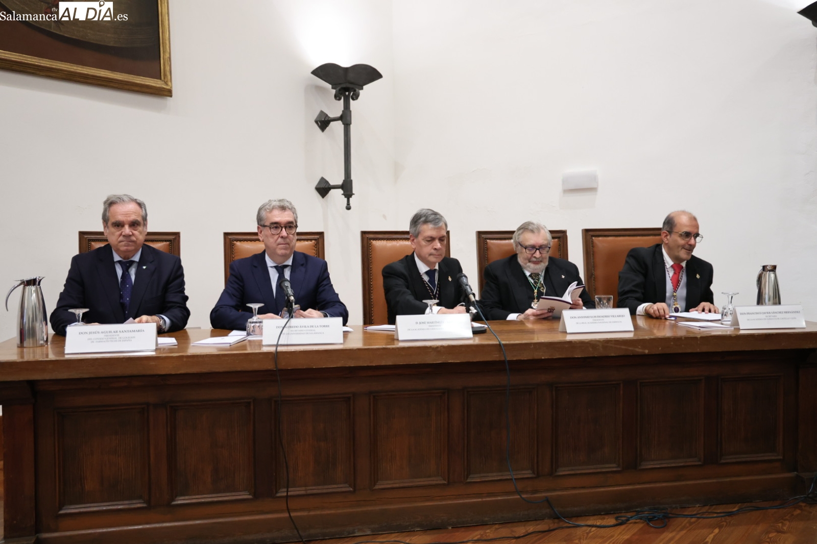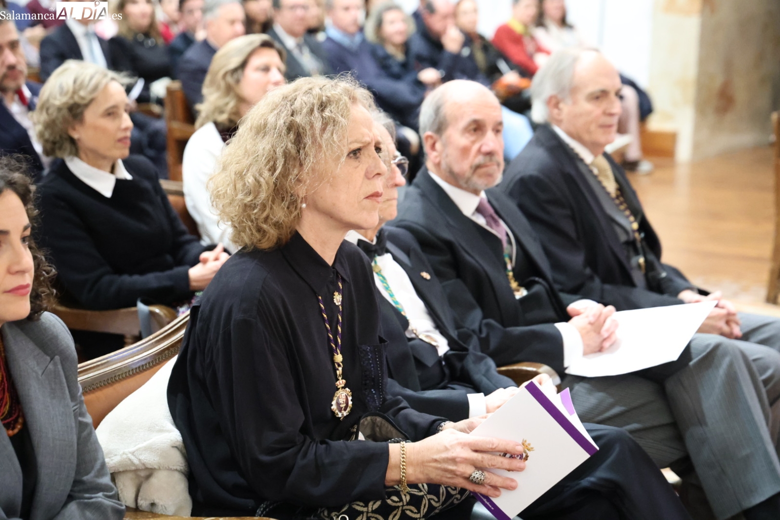 La Academia de Farmacia de Castilla y León celebró este viernes 7 de febrero, en el Aula Salinas de la Universidad de Salamanca, el solemne acto de apertura del Curso Académico 2025. Durante la ceremonia, se otorgó la Medalla de Honor de la Academia a los prestigiosos científicos D. Mariano Esteban Rodríguez y D. Juan Tamargo Menéndez, en reconocimiento a su trayectoria. Asimismo, se nombró Presidente de Honor al Excmo. Sr. D. Carlos Gómez Cangua-Arguelles.