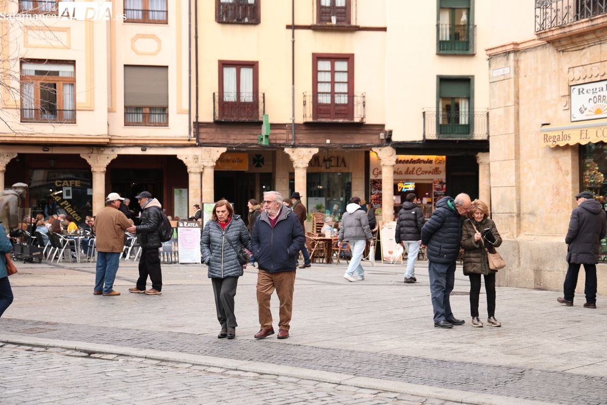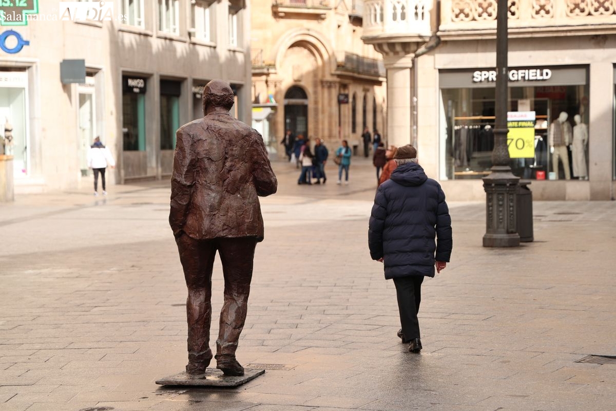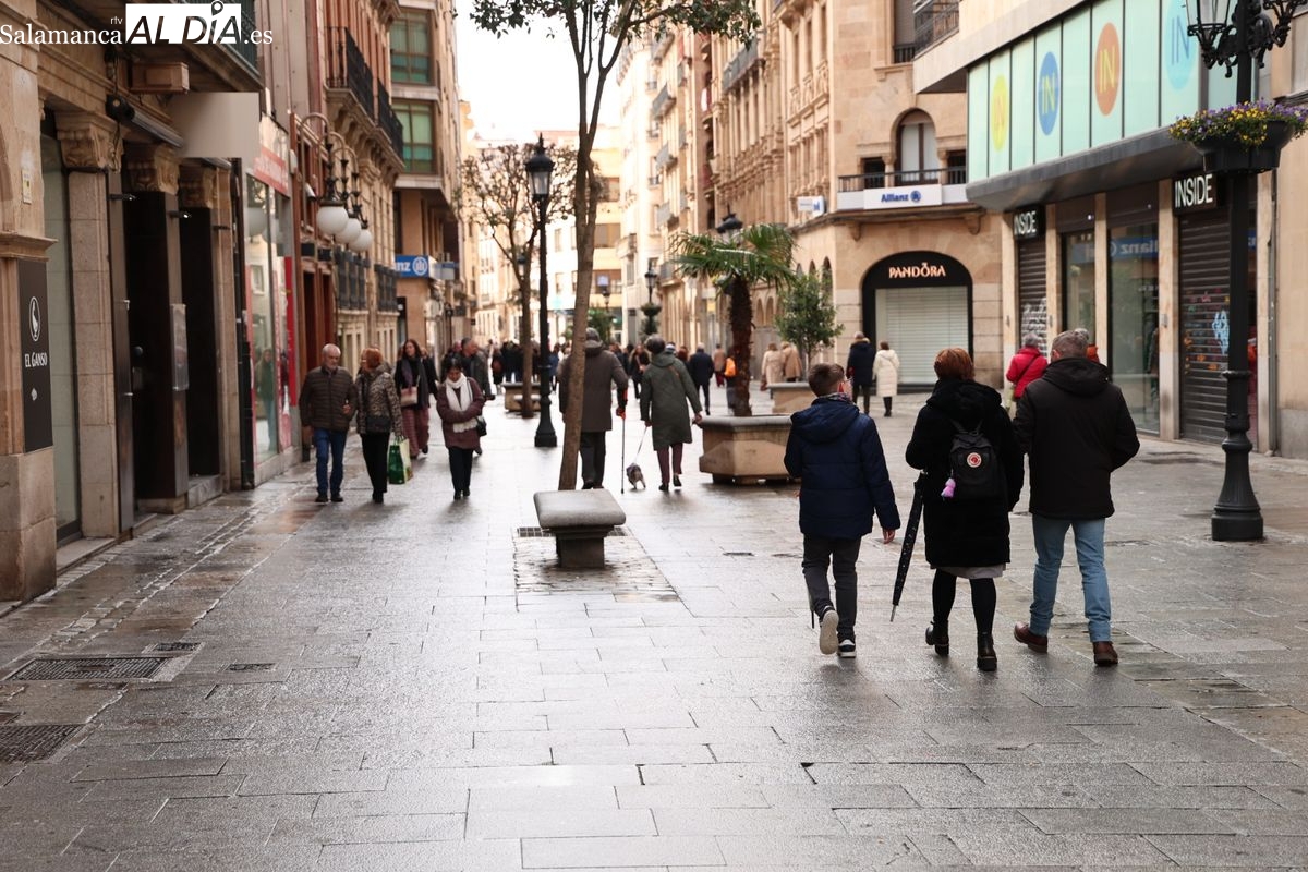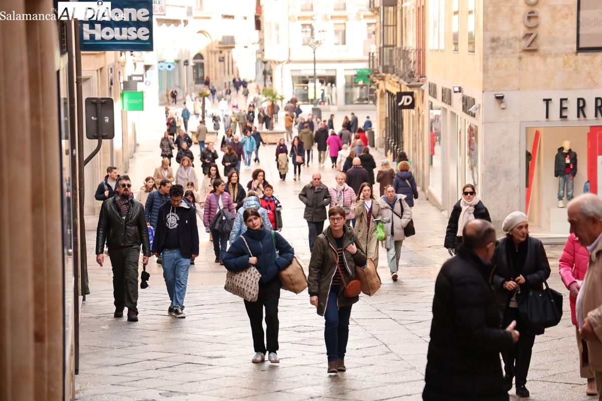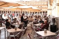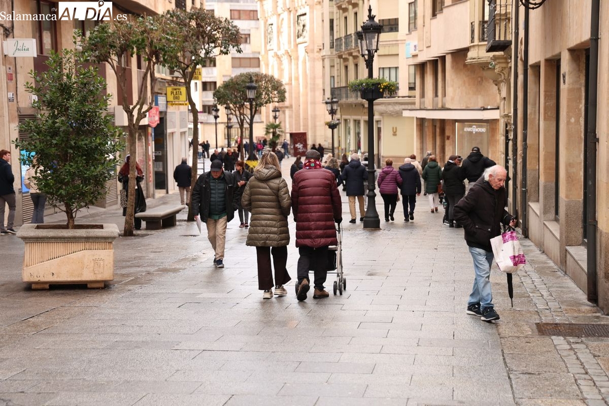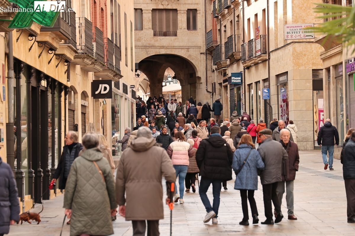 Pese a que el día ha amanecido con lluvia, al mediodía, la mejoría del tiempo, ha invitado a los salmantinos y turistas a pasear por el centro de la ciudad o tomar algo en las terrazas