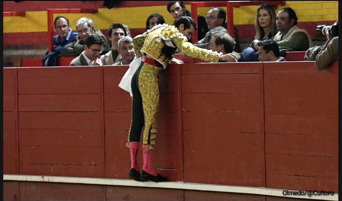En el quinto capítulo de una función que había transcurrido sin pena ni gloria hasta ese momento debido al mal juego de los toros, saltó al ruedo 'Desprendido', un toro armónico y de preciosas hechuras de Garcigrande. Emilio de Justo se fue a recibirlo de rodillas a 'porta gayola' para cambiar el sino de la tarde.