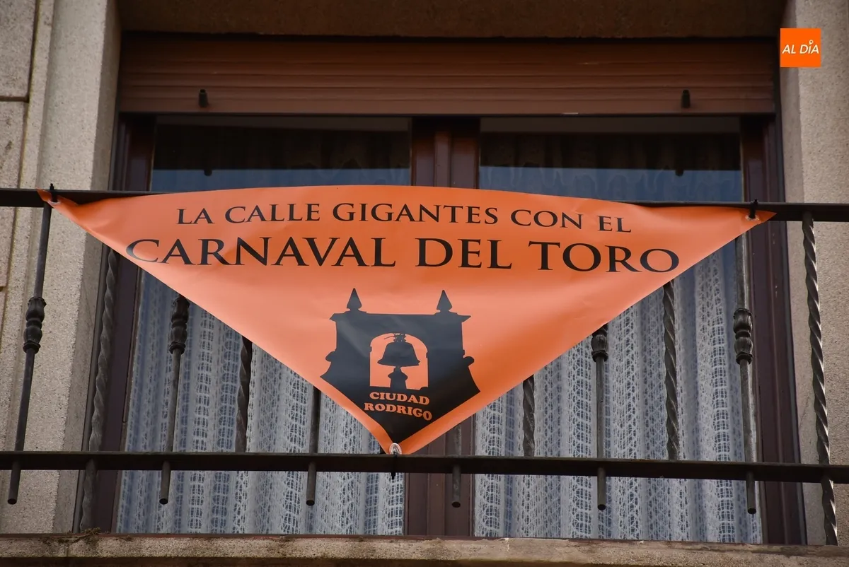 Asimismo ya ha sido situado, en la calle Gigantes, uno de los pañuelos farinatos de grandes dimensiones que se estrenaron el año pasado por iniciativa de vecinos y comerciantes de varias calles del centro histórico mirobrigense, en los que figuran la silueta de la campana de la Casa Consistorial junto a la leyenda –en este caso- ‘La calle Gigantes con el Carnaval del Toro’.