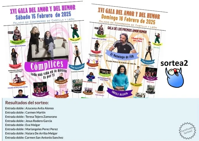 ¡Ya hay ganadores! Estos son los premiados de las 8 entradas dobles gratis para la XVI Gala del Amor y del Humor de Salamanca | Imagen 1