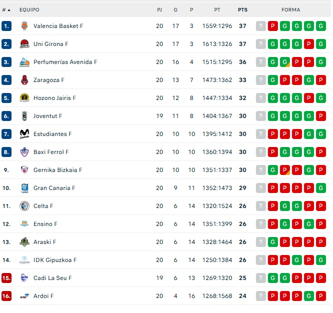 La derrota del Valencia Basket y el triunfo de las salmantinas sobre el Movistar Estudiantes ha apretado más la pelea por el campeonato regular