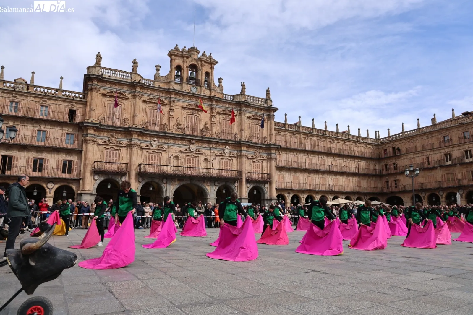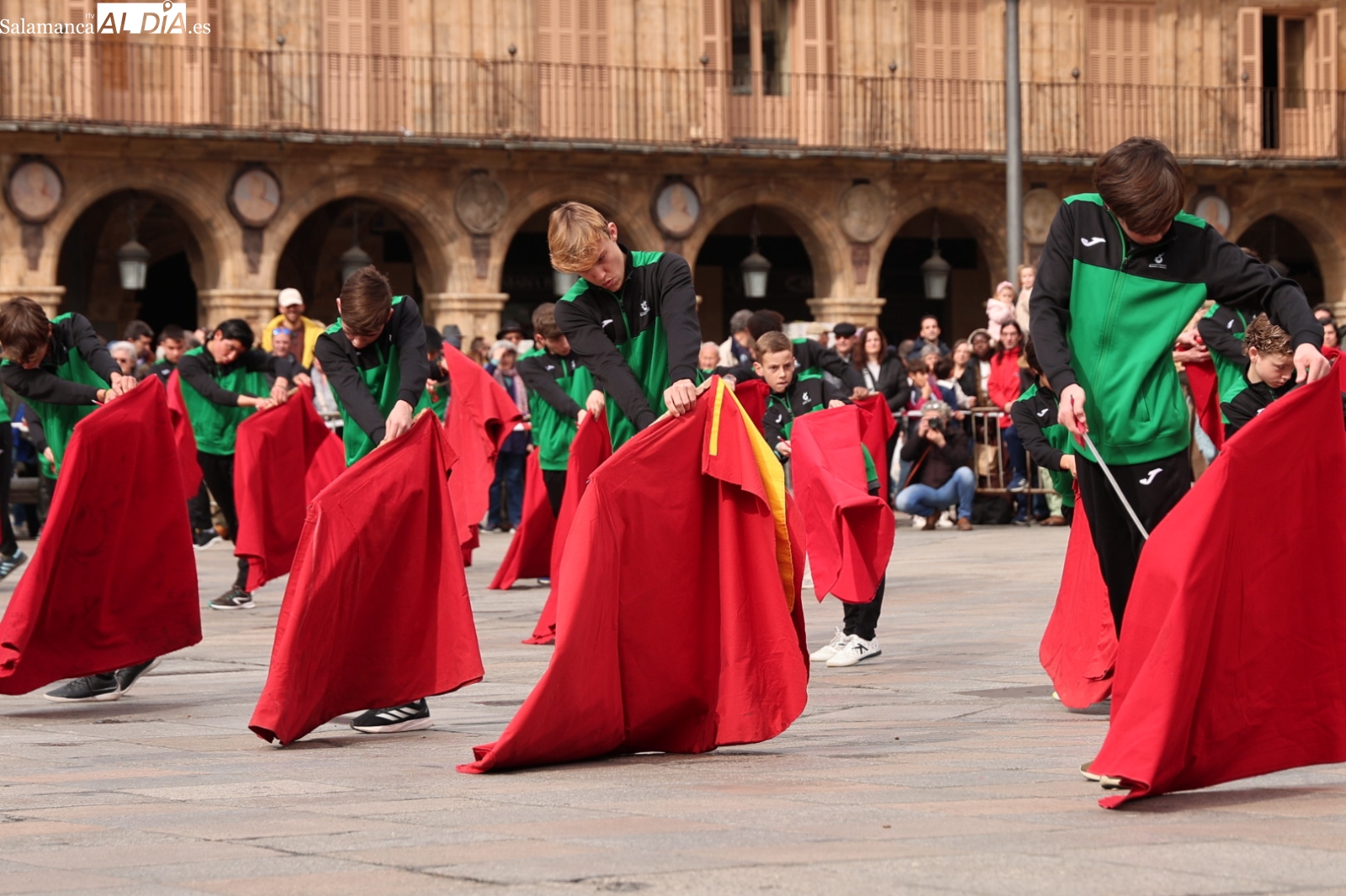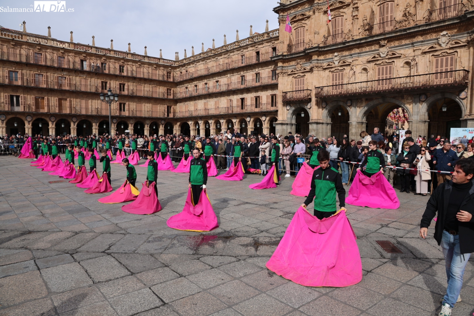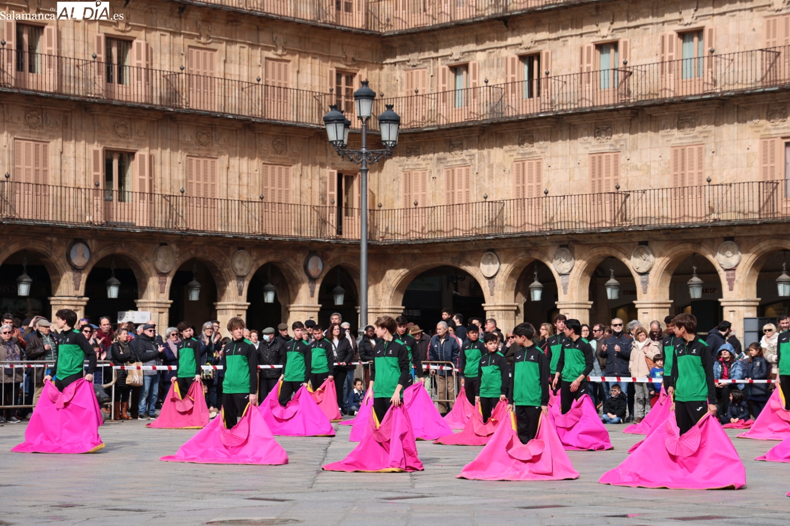 La Plaza Mayor de Salamanca se convirtió en un auténtico ruedo al aire libre en la soleada mañana de este sábado, con los alumnos de la Escuela Taurina de la Diputación ofreciendo una brillante exhibición de toreo de salón para conmemorar el 40º aniversario de la institución. Cientos de espectadores se congregaron en el emblemático ágora salmantino para presenciar el arte y la destreza de las futuras promesas del toreo.