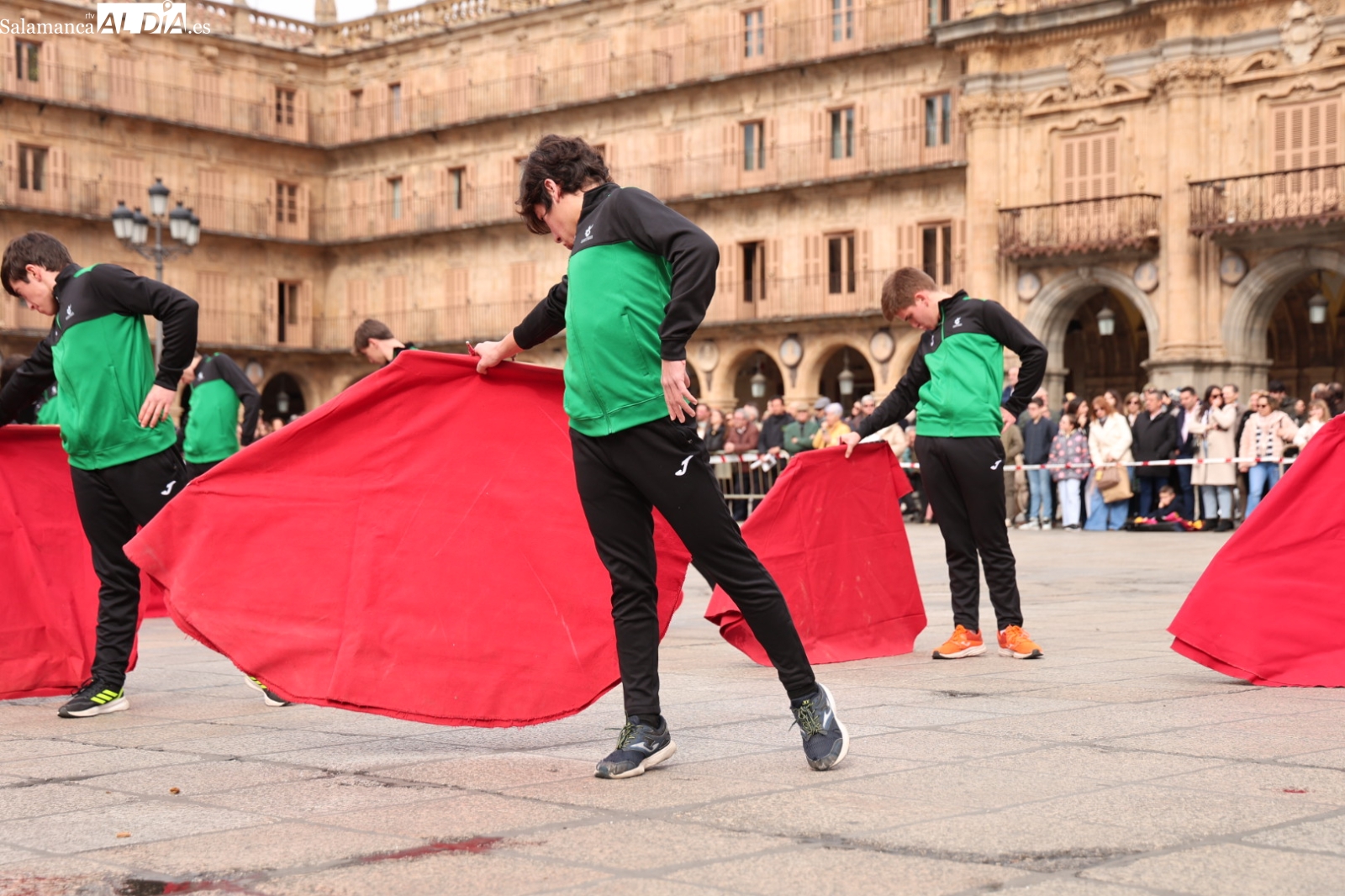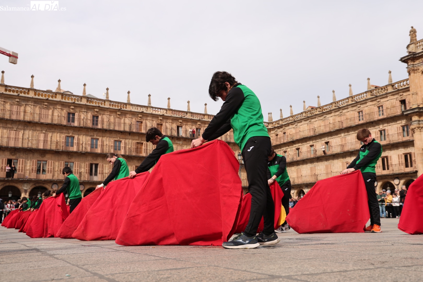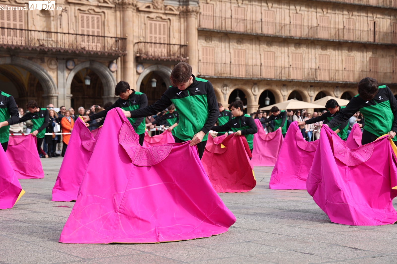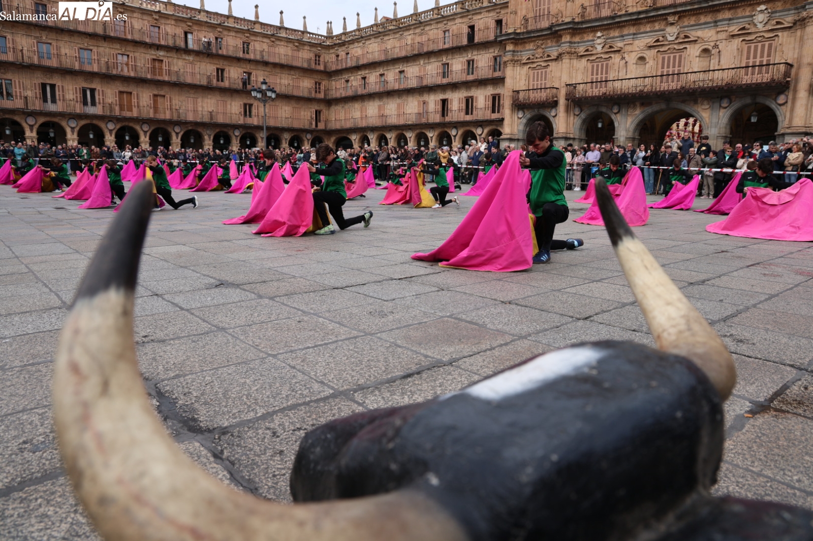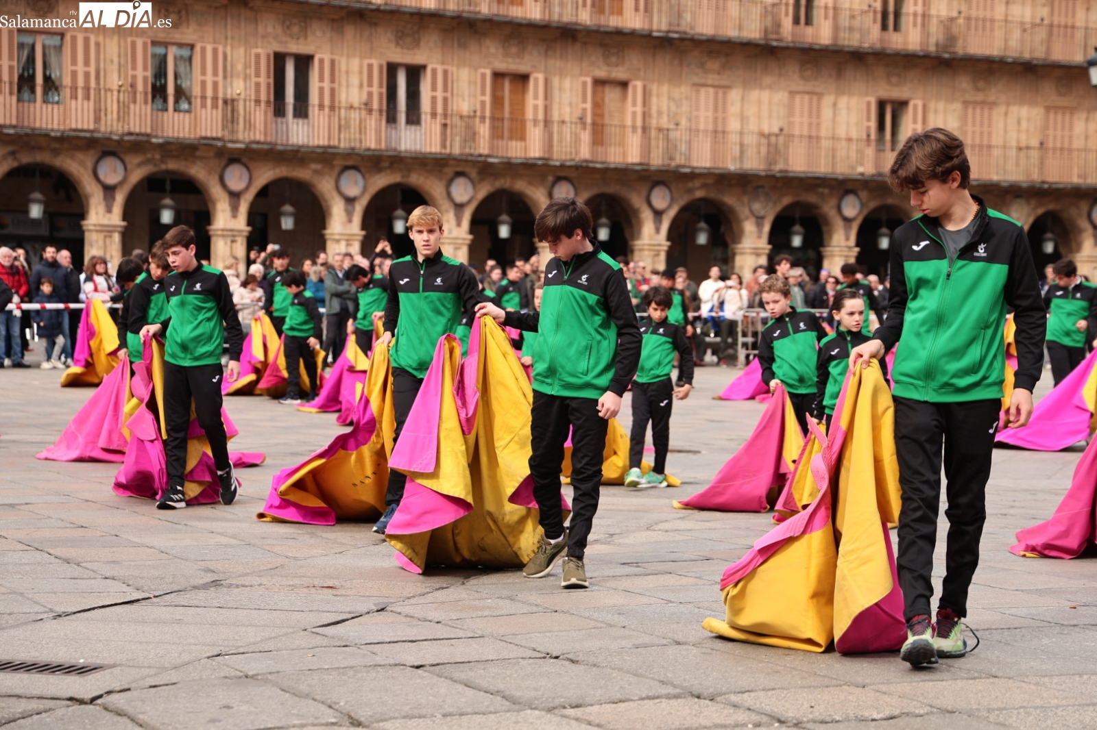 La Plaza Mayor de Salamanca se convirtió en un auténtico ruedo al aire libre en la soleada mañana de este sábado, con los alumnos de la Escuela Taurina de la Diputación ofreciendo una brillante exhibición de toreo de salón para conmemorar el 40º aniversario de la institución. Cientos de espectadores se congregaron en el emblemático ágora salmantino para presenciar el arte y la destreza de las futuras promesas del toreo.