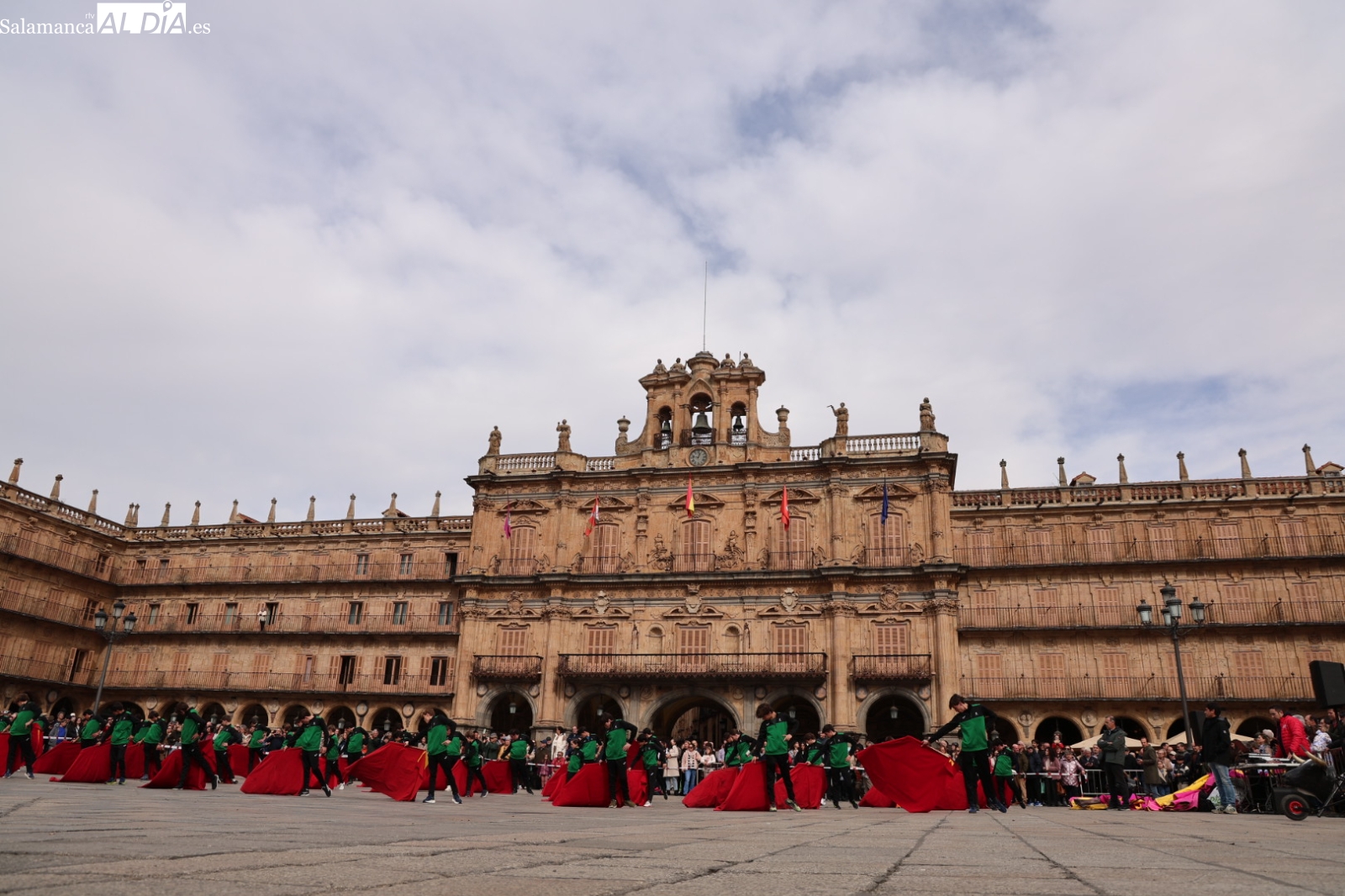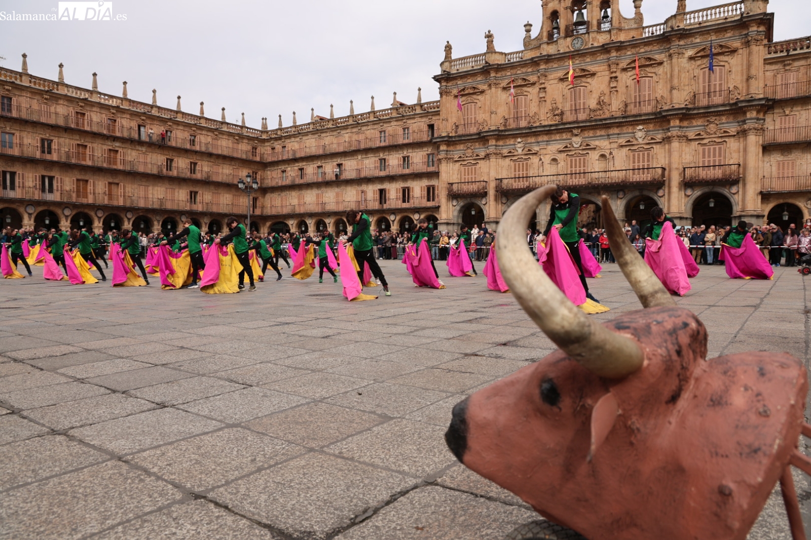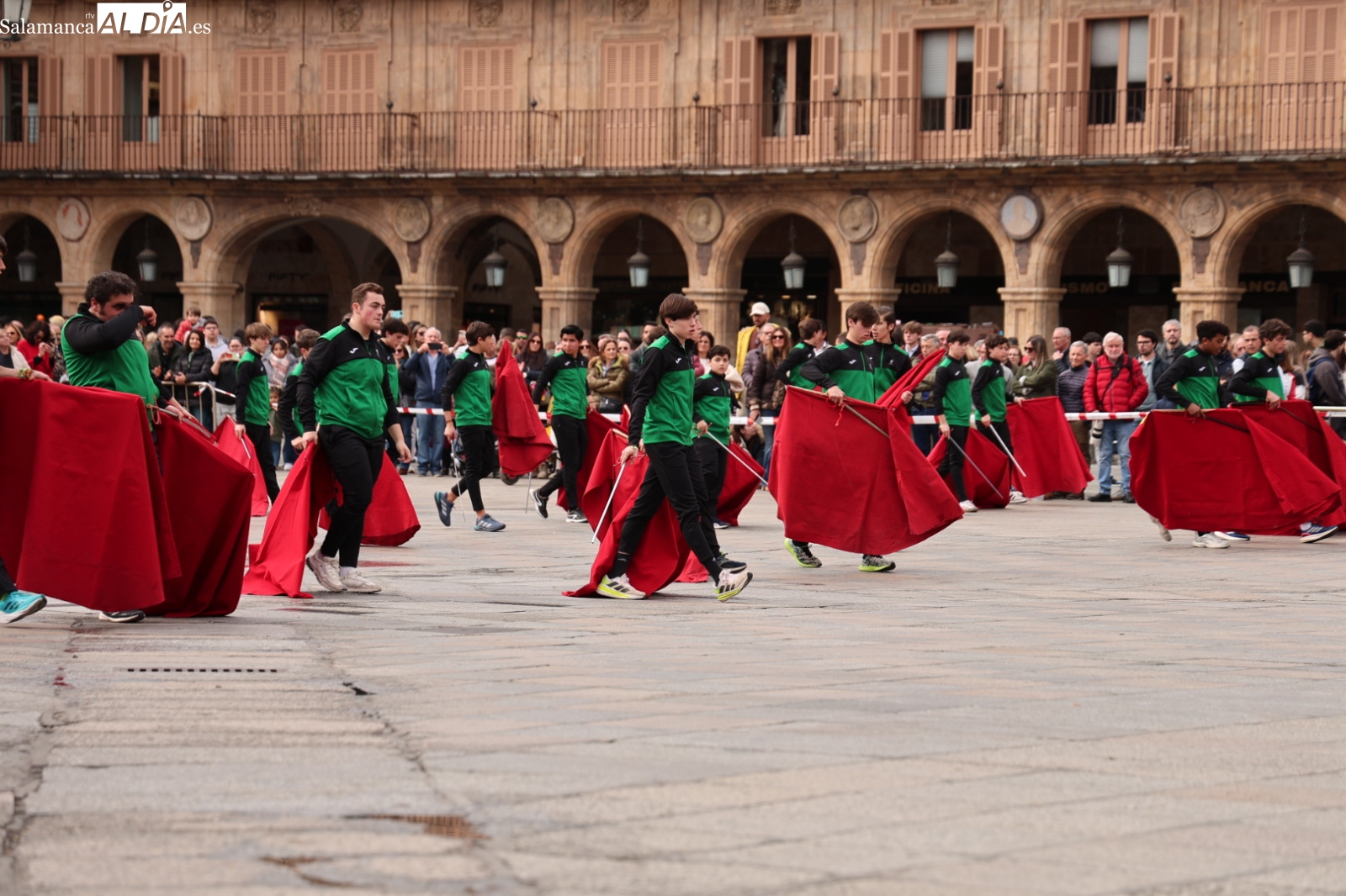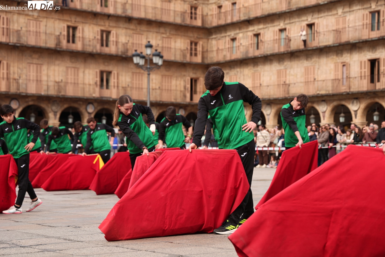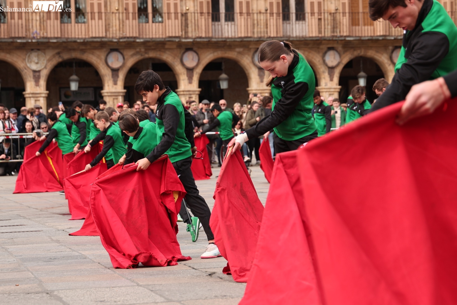 La Plaza Mayor de Salamanca se convirtió en un auténtico ruedo al aire libre en la soleada mañana de este sábado, con los alumnos de la Escuela Taurina de la Diputación ofreciendo una brillante exhibición de toreo de salón para conmemorar el 40º aniversario de la institución. Cientos de espectadores se congregaron en el emblemático ágora salmantino para presenciar el arte y la destreza de las futuras promesas del toreo.