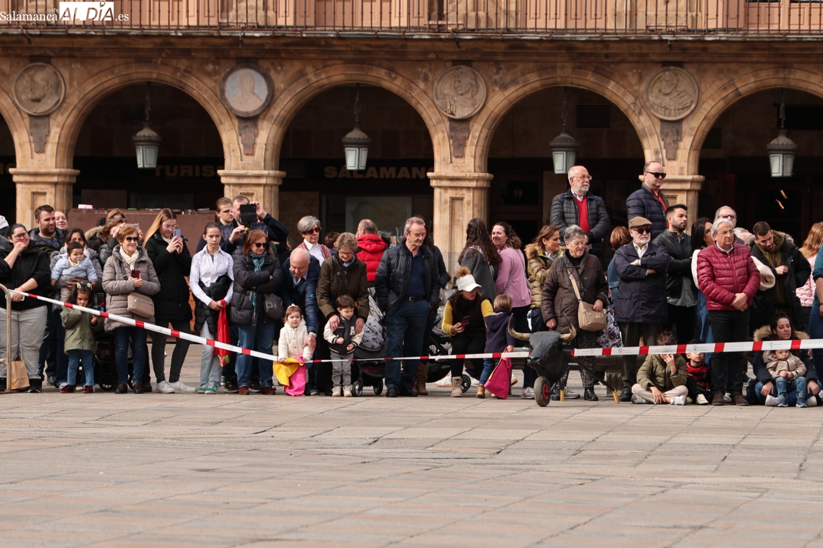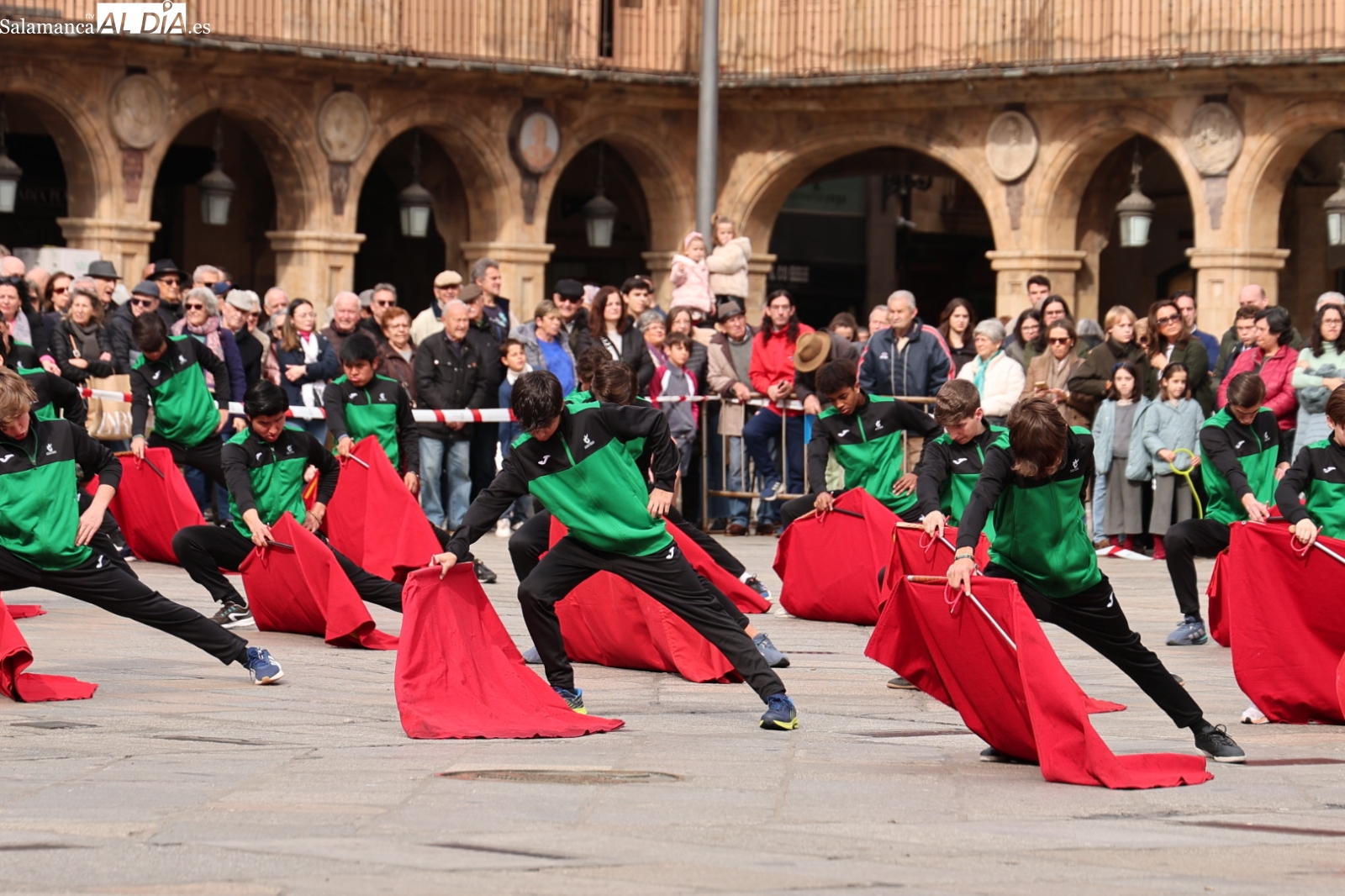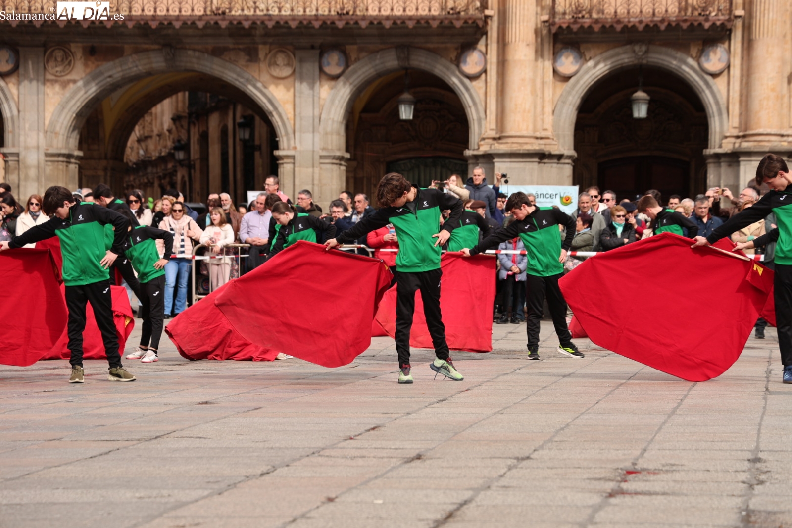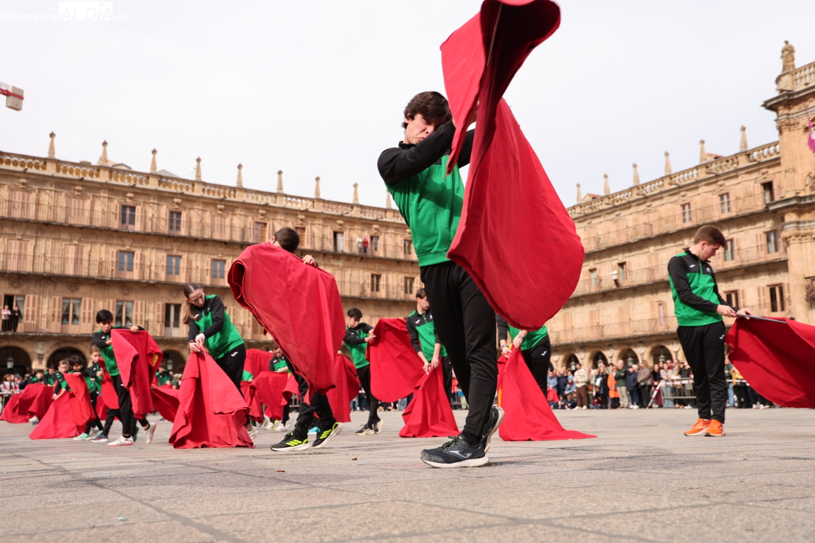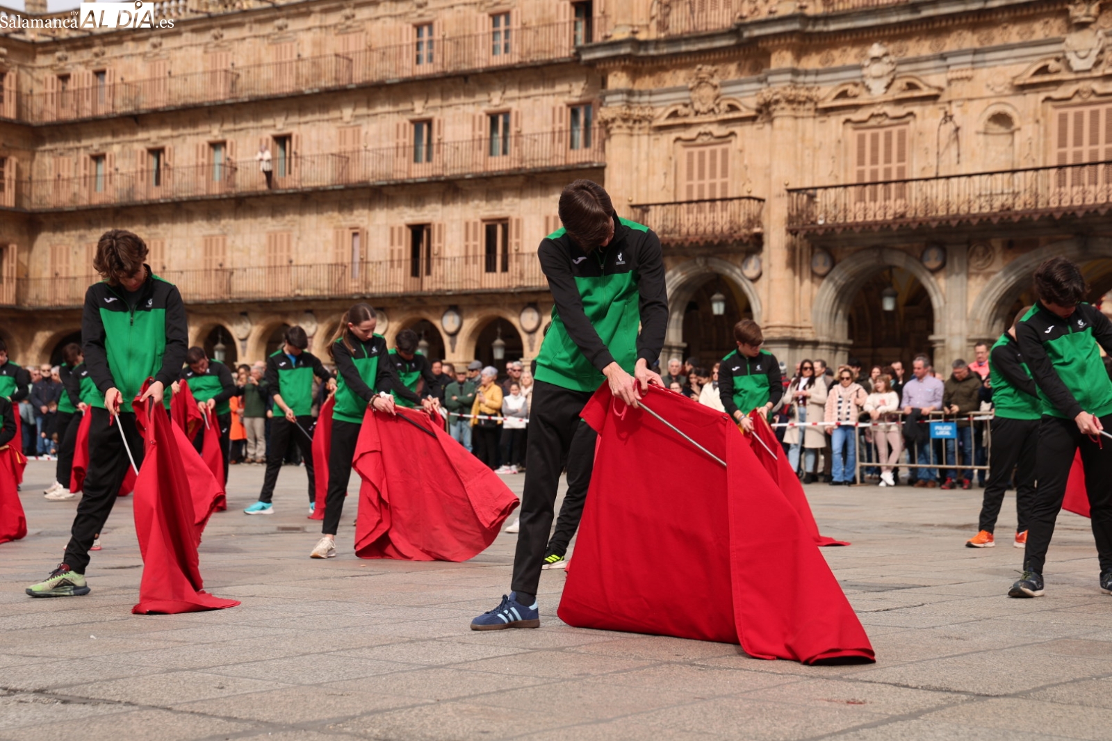La Plaza Mayor de Salamanca se convirtió en un auténtico ruedo al aire libre en la soleada mañana de este sábado, con los alumnos de la Escuela Taurina de la Diputación ofreciendo una brillante exhibición de toreo de salón para conmemorar el 40º aniversario de la institución. Cientos de espectadores se congregaron en el emblemático ágora salmantino para presenciar el arte y la destreza de las futuras promesas del toreo.