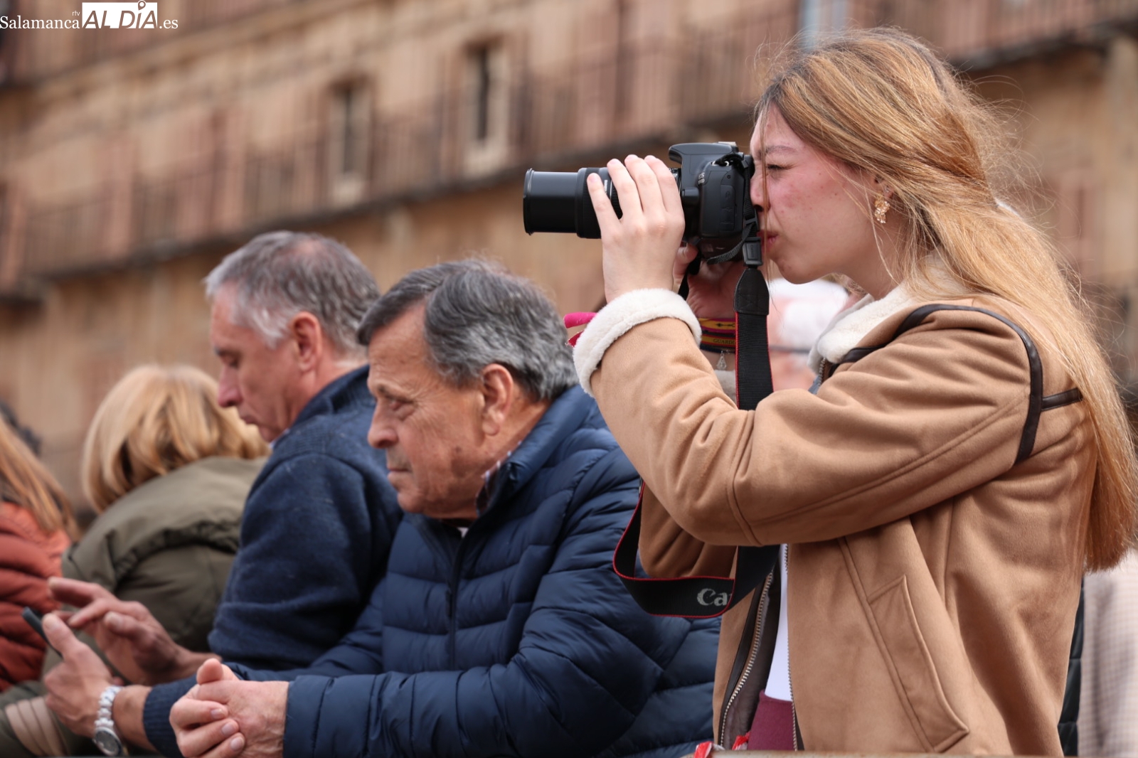 La celebración contó con la presencia del presidente de la Diputación, Javier Iglesias; el alcalde de la ciudad, Carlos García Carbayo; la concejala Carmen Seguín, el diputado Jesús María Ortiz y el delegado territorial de la Junta de Castilla y León en Salamanca, Eloy Ruiz. Además, Santiago Martín "El Viti" no quiso perderse este evento en el corazón de la ciudad.