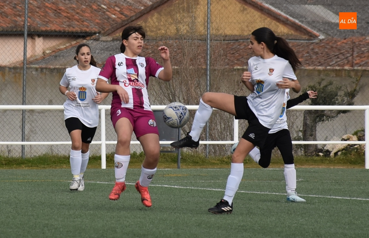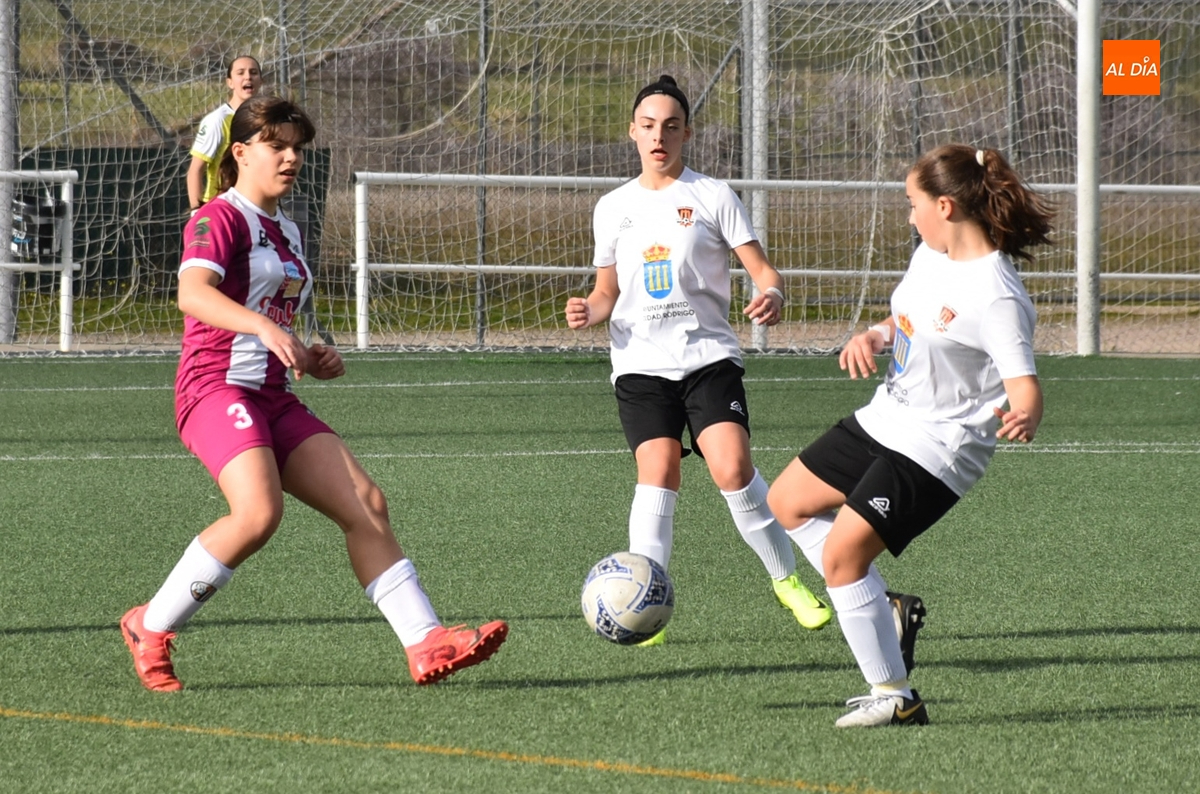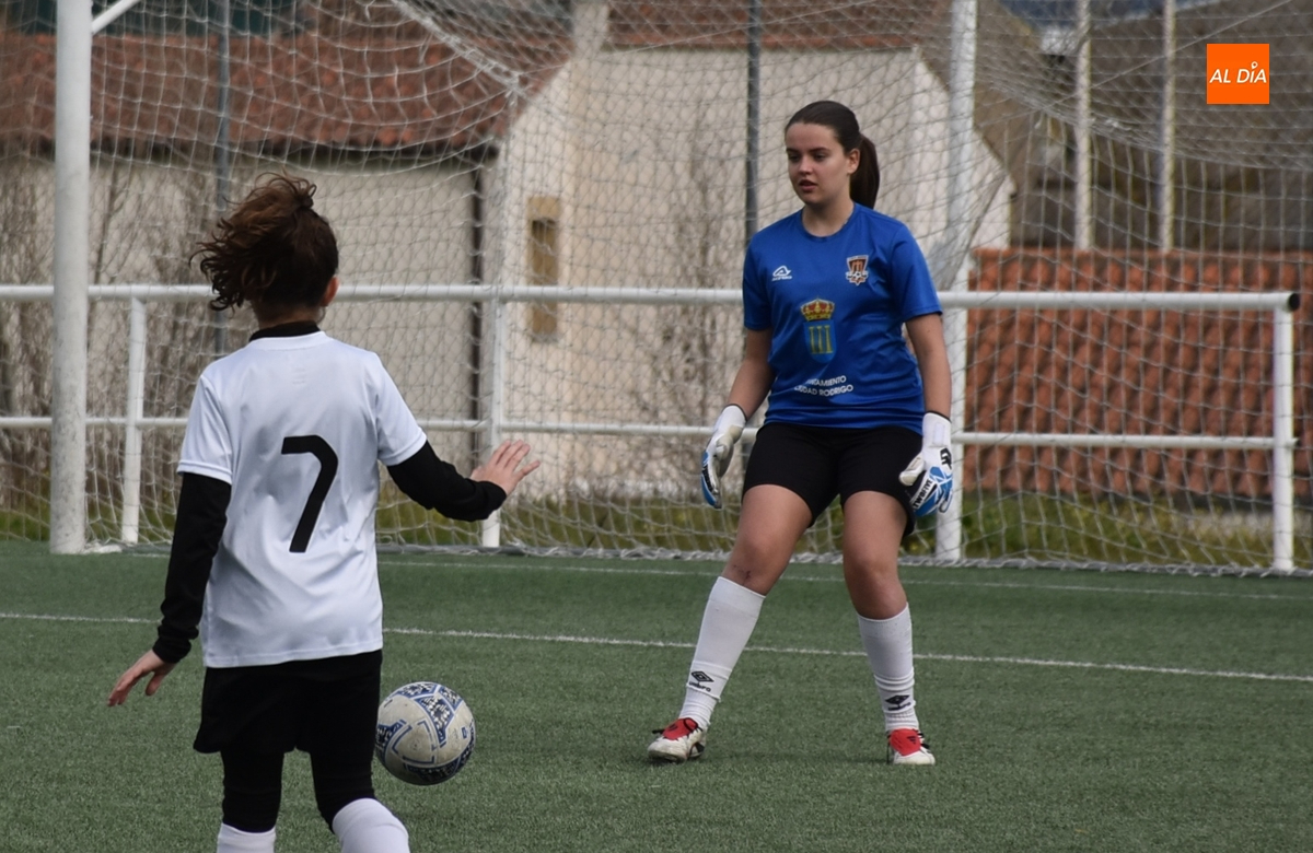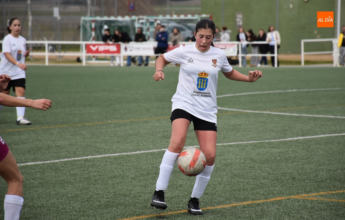 Tras una primera parte parca en ocasiones, el Ciudad Rodrigo apretó el acelerador ofensivo en los últimos minutos, empezando en el 25’ con un remate de primeras de Celia desde la frontal que se fue al lado del palo izquierdo. Apenas un minuto después, la guardameta salió a cortar a tiempo el balón en largo enviado desde atrás hacia Celia, concluyendo este período con una gran ocasión: en un saque de esquina desde la derecha, hubo un gran remate de Noa Martín de primeras, con la mala suerte de que el balón fue justo a donde estaba la guardameta.