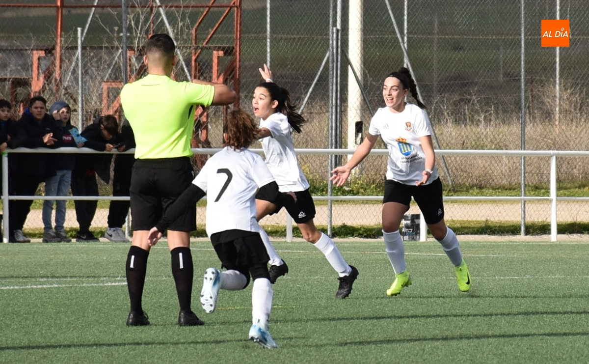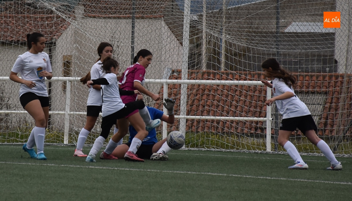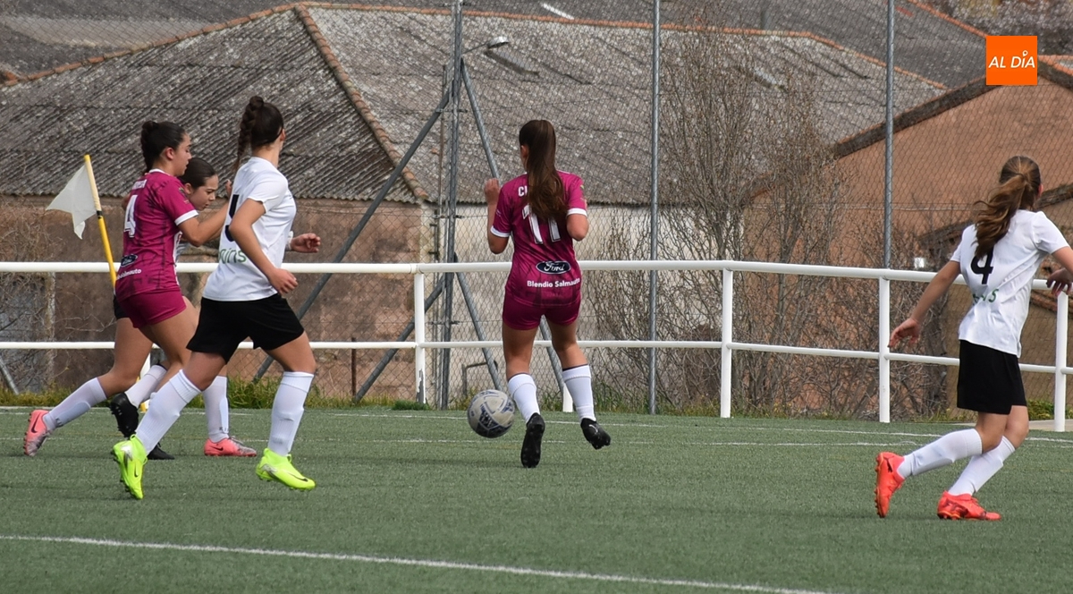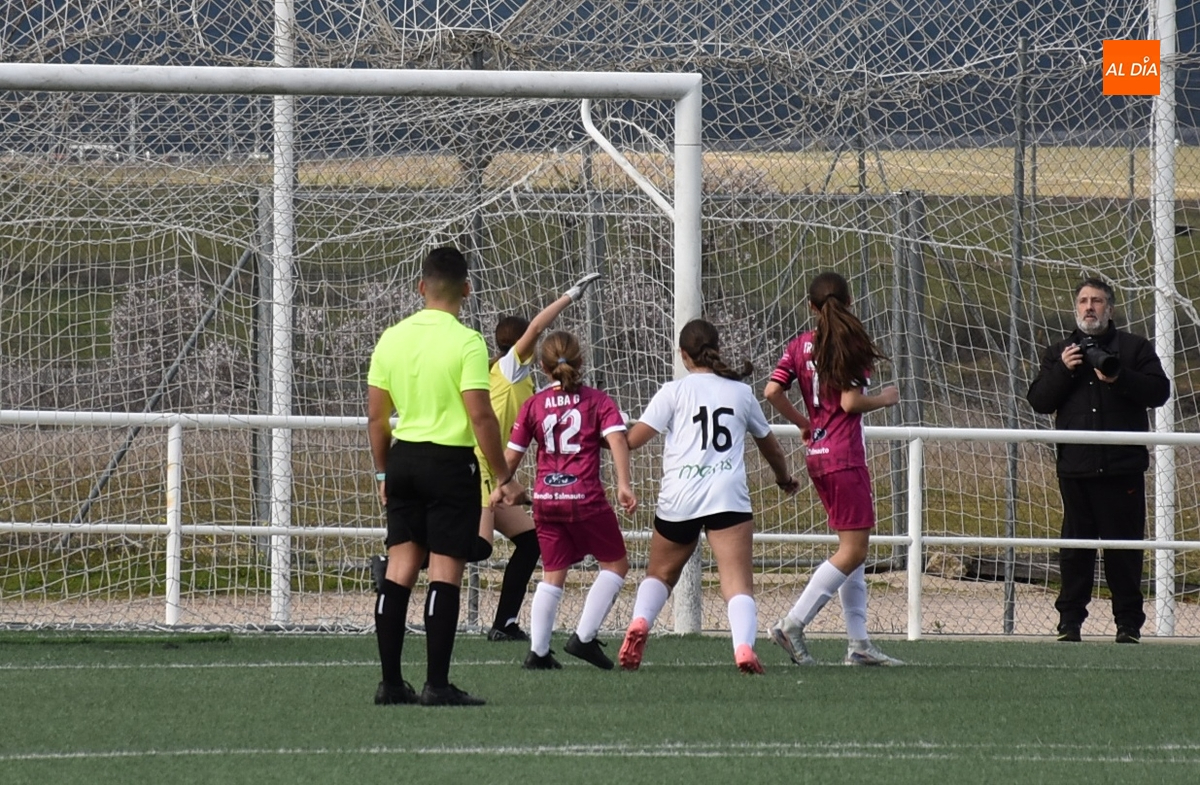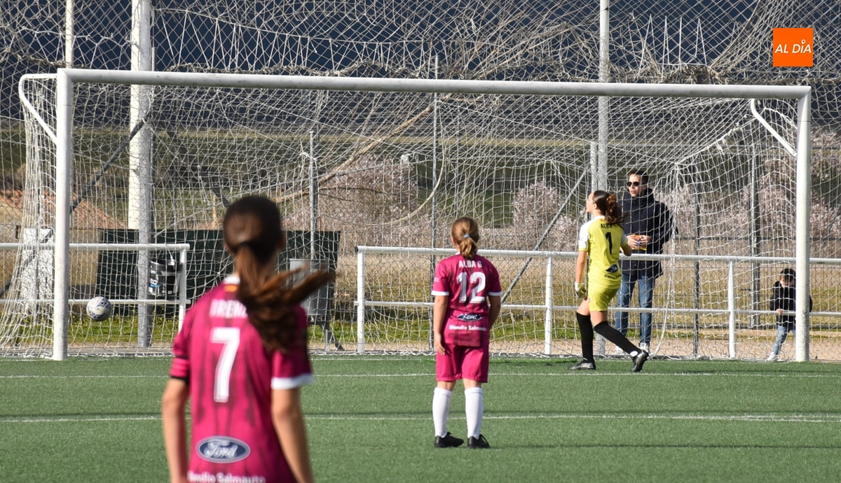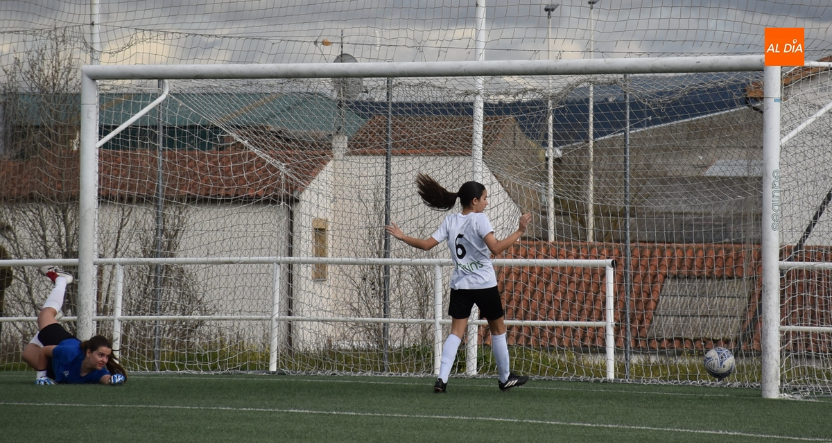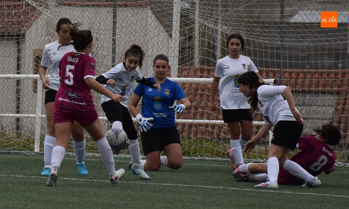 De hecho, el Atlético Femenino Ciudad de Salamanca ni tiró a puerta en el primer período, dentro del cual el Ciudad Rodrigo se adelantó en la primera ocasión de peligro, en el 11’, con un disparo raso cruzado de Celia desde la izquierda del área, que se hizo camino hasta el fondo de la red.