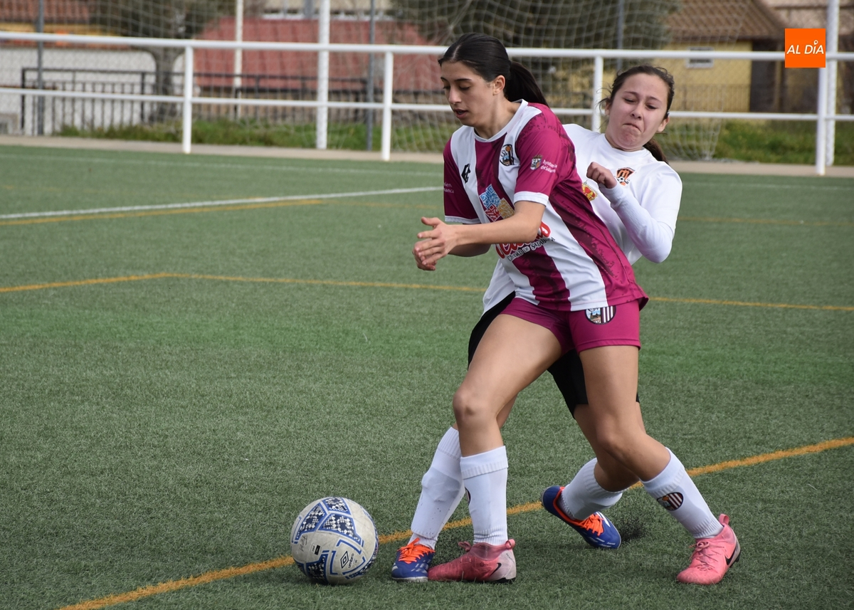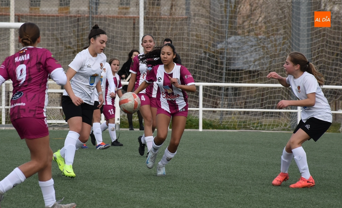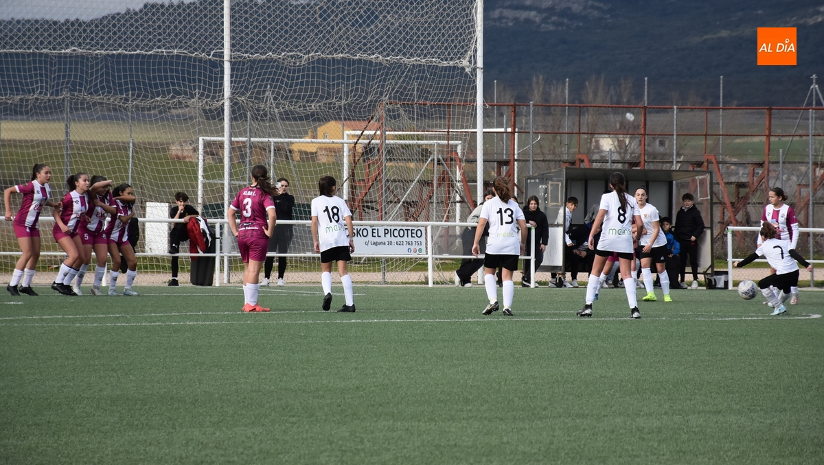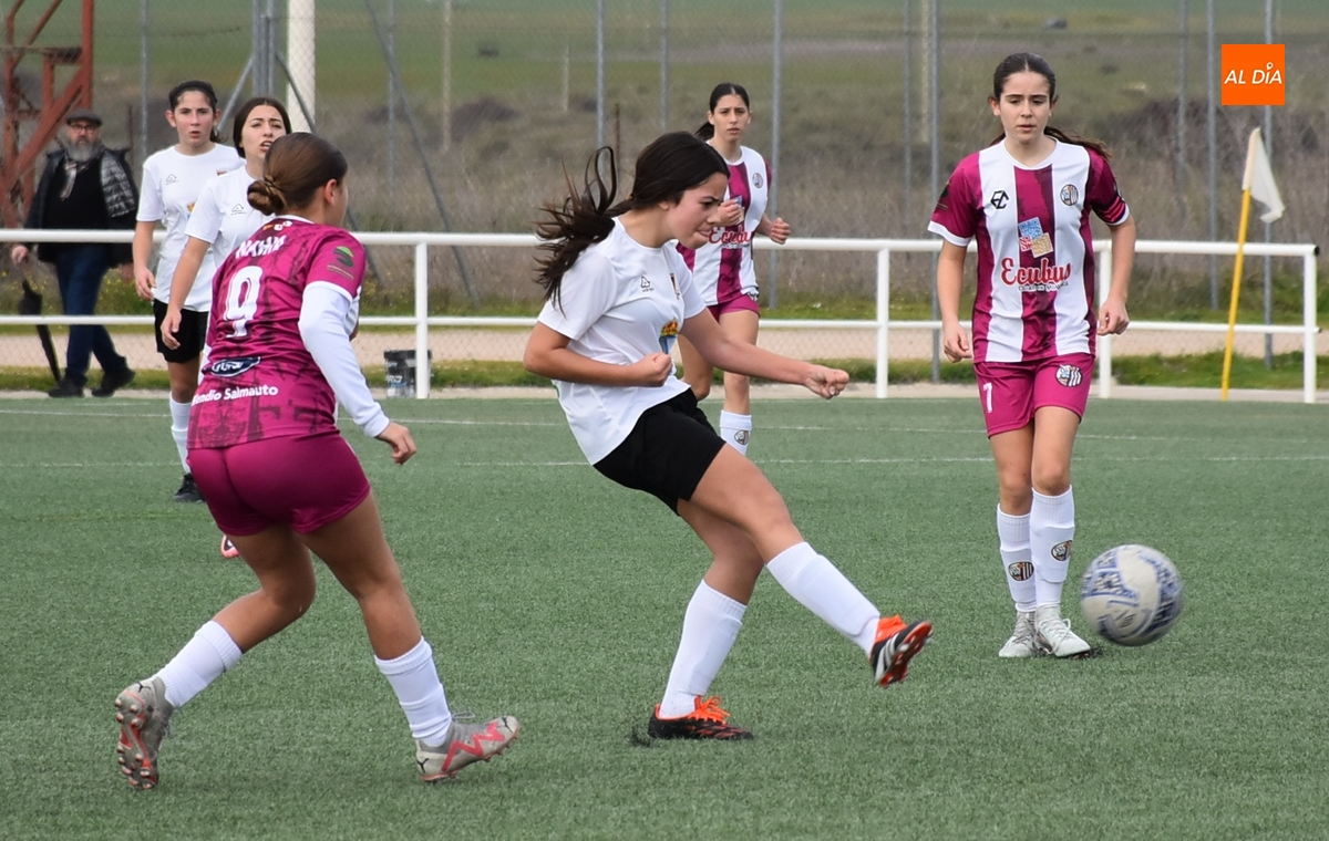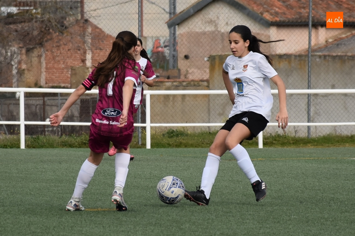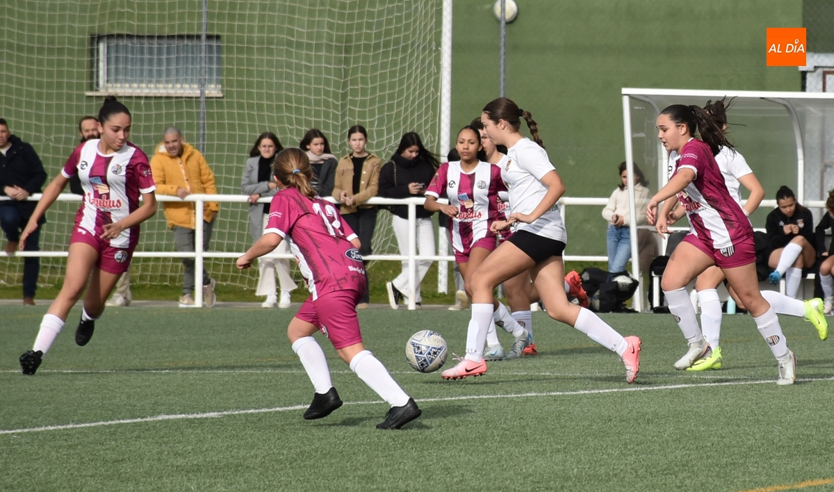 De hecho, el Atlético Femenino Ciudad de Salamanca ni tiró a puerta en el primer período, dentro del cual el Ciudad Rodrigo se adelantó en la primera ocasión de peligro, en el 11’, con un disparo raso cruzado de Celia desde la izquierda del área, que se hizo camino hasta el fondo de la red.