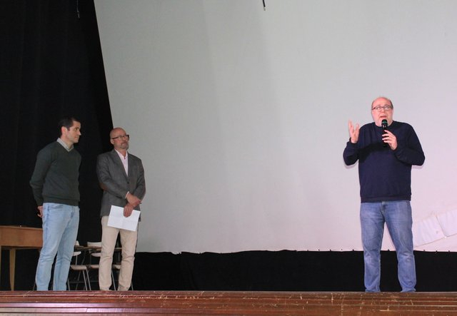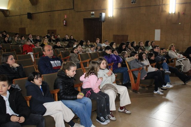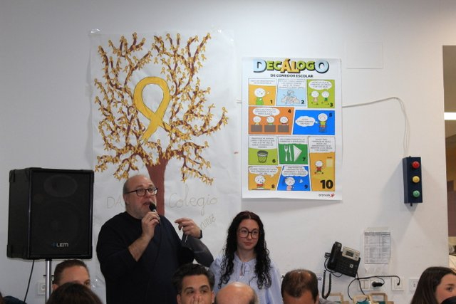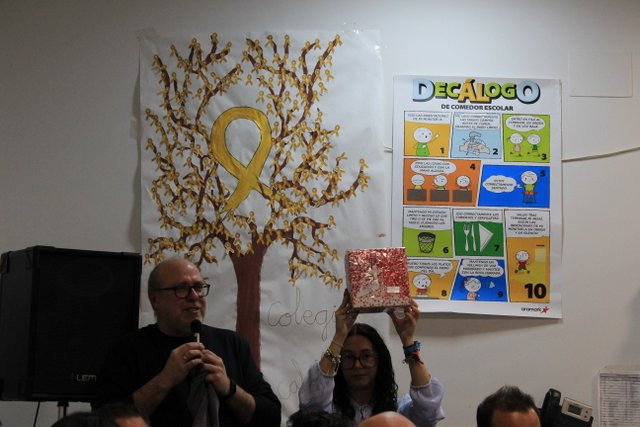 El acto comenzó en el teatro del colegio, presentando la entidad con la que se ha colaborado: PYFANO. El director y fundador de la asociación, Don Miguel Ángel Vicente, explicó a los asistentes la labor y acompañamiento que realizan con los pacientes oncológicos y sus familiares, haciendo mención especial a la necesidad de que estos niños y niñas puedan tener a su disposición psicólogos especializados.