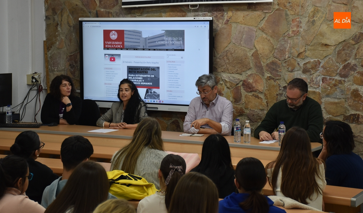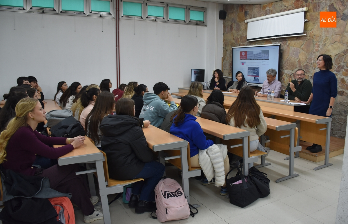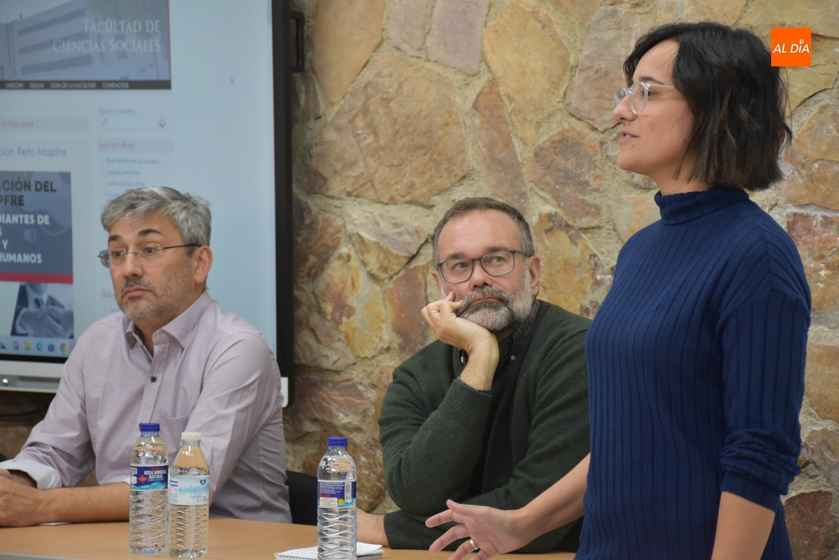 En la mañana del miércoles, la experiencia de la mesa redonda se repitió con el área de Ciencias Sociales, contándose con la participación de Arsenio Dacosta, vicedecano de Docencia y Calidad de la Facultad de Ciencias Sociales de la Universidad de Salamanca (USAL); Kerman Calvo, profesor de la Facultad de Sociología de la USAL; María Antonia Rubio Rubio, profesora del Departamento de Economía del propio IES Tierra; y Elena Mateos Gordon, coordinadora de la Línea de Programas de Empleo y Movilidad en entornos rurales de la Fundación Cepaim.