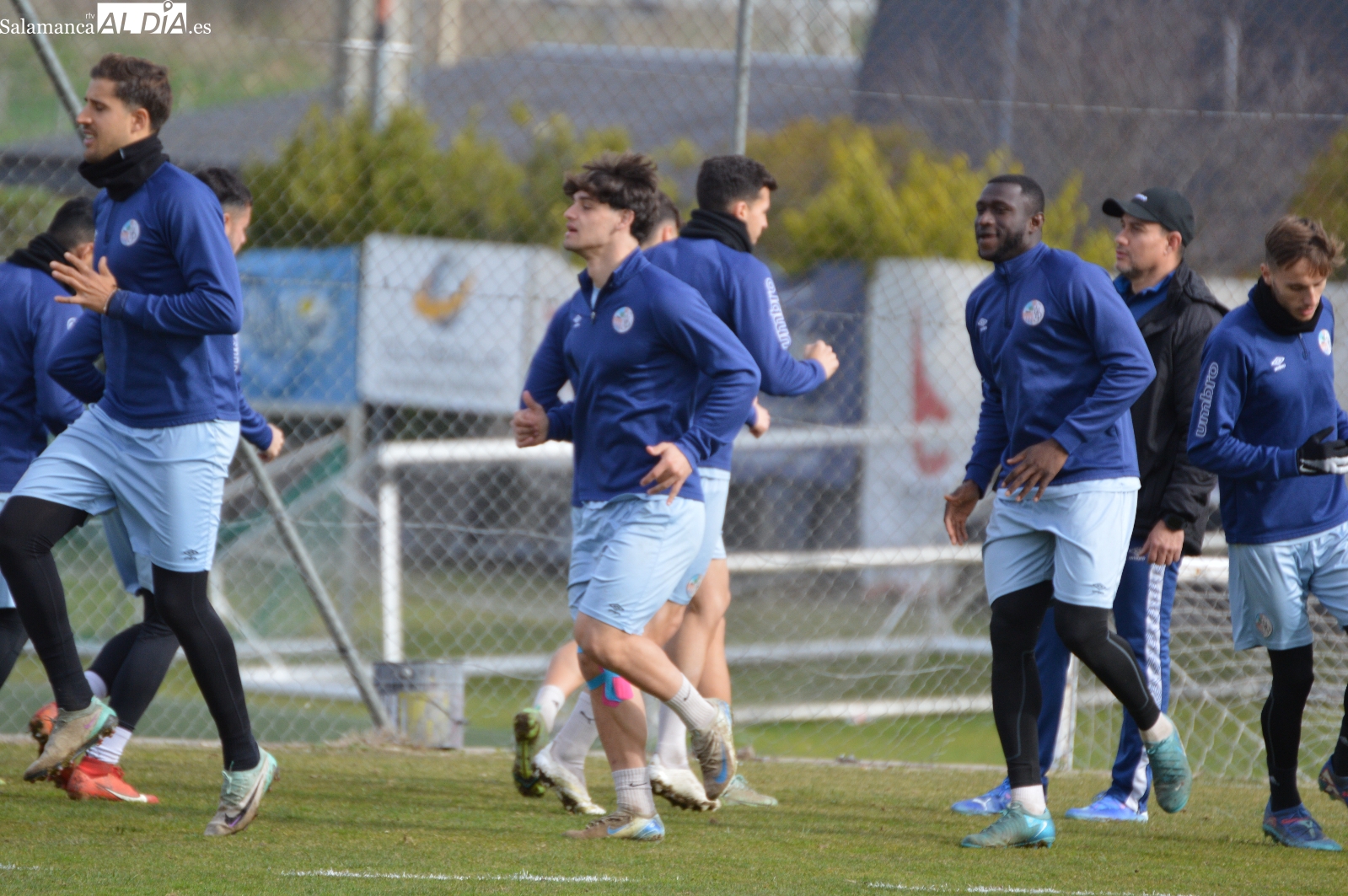 Hugo Parra se ha puesto serio en el entrenamiento del Salamanca UDS al demandar alta intensidad y mayor esfuerzo para preparar el Llanera a los futbolistas. De este modo, el preparador físico ha llevado la voz cantante en una sesión en la que la única baja sigue siendo la de Caramelo, que lleva más de un mes KO.