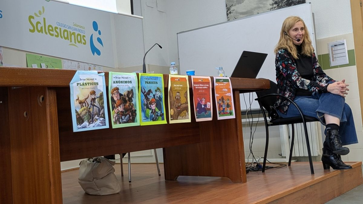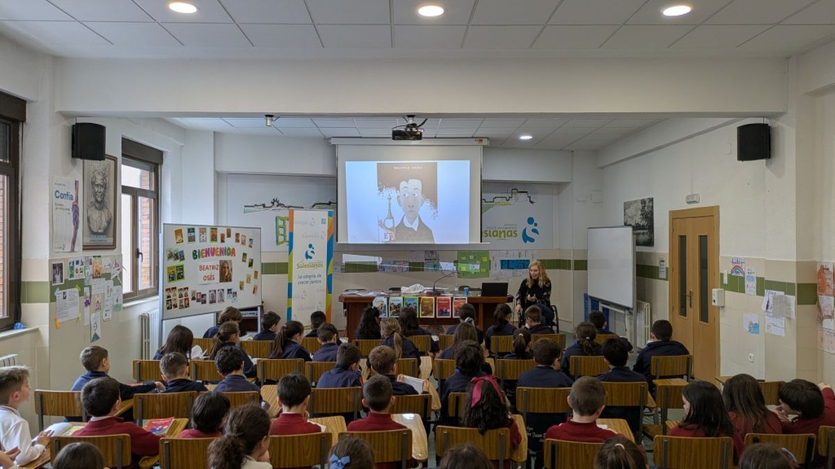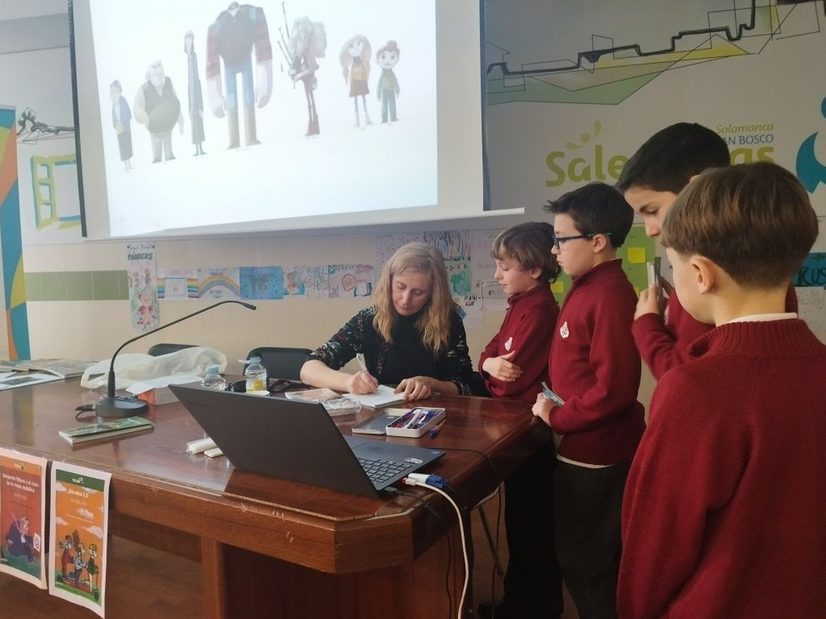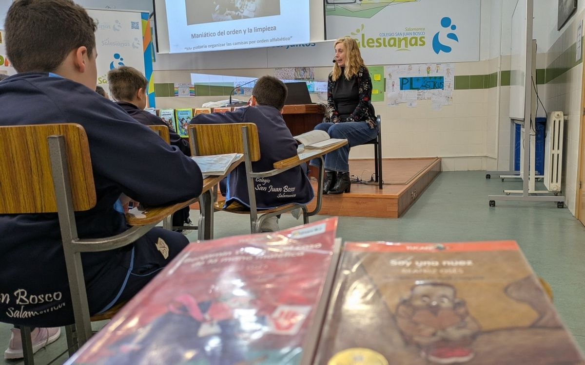 El colegio San Juan Bosco de Salamanca han recibido este martes, 18 de febrero, la visita de la autora Beatriz Osés, escritora de libros y cuentos infantiles.