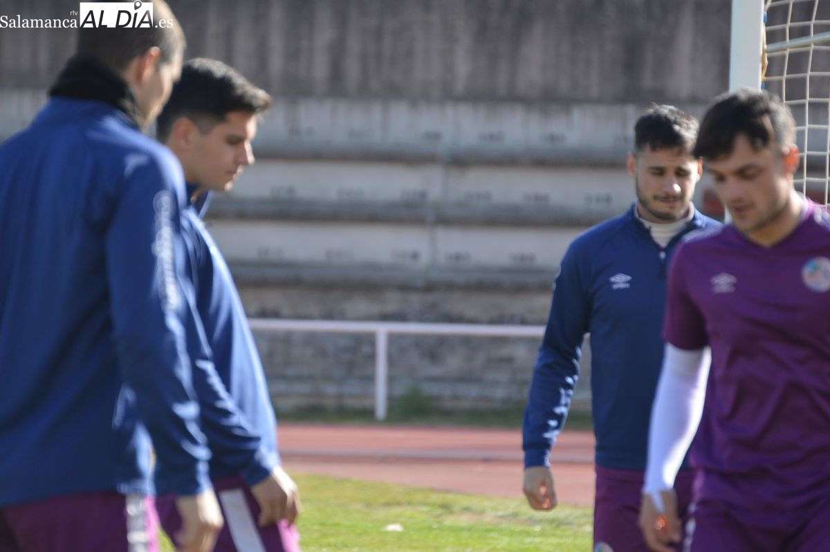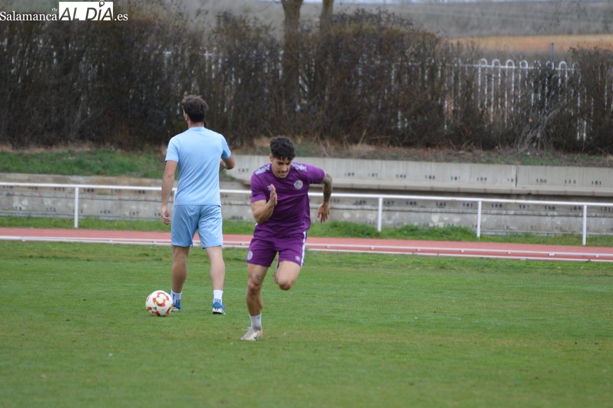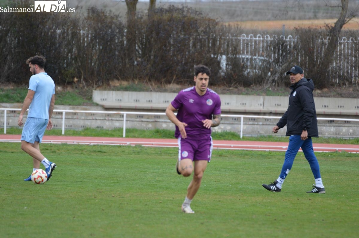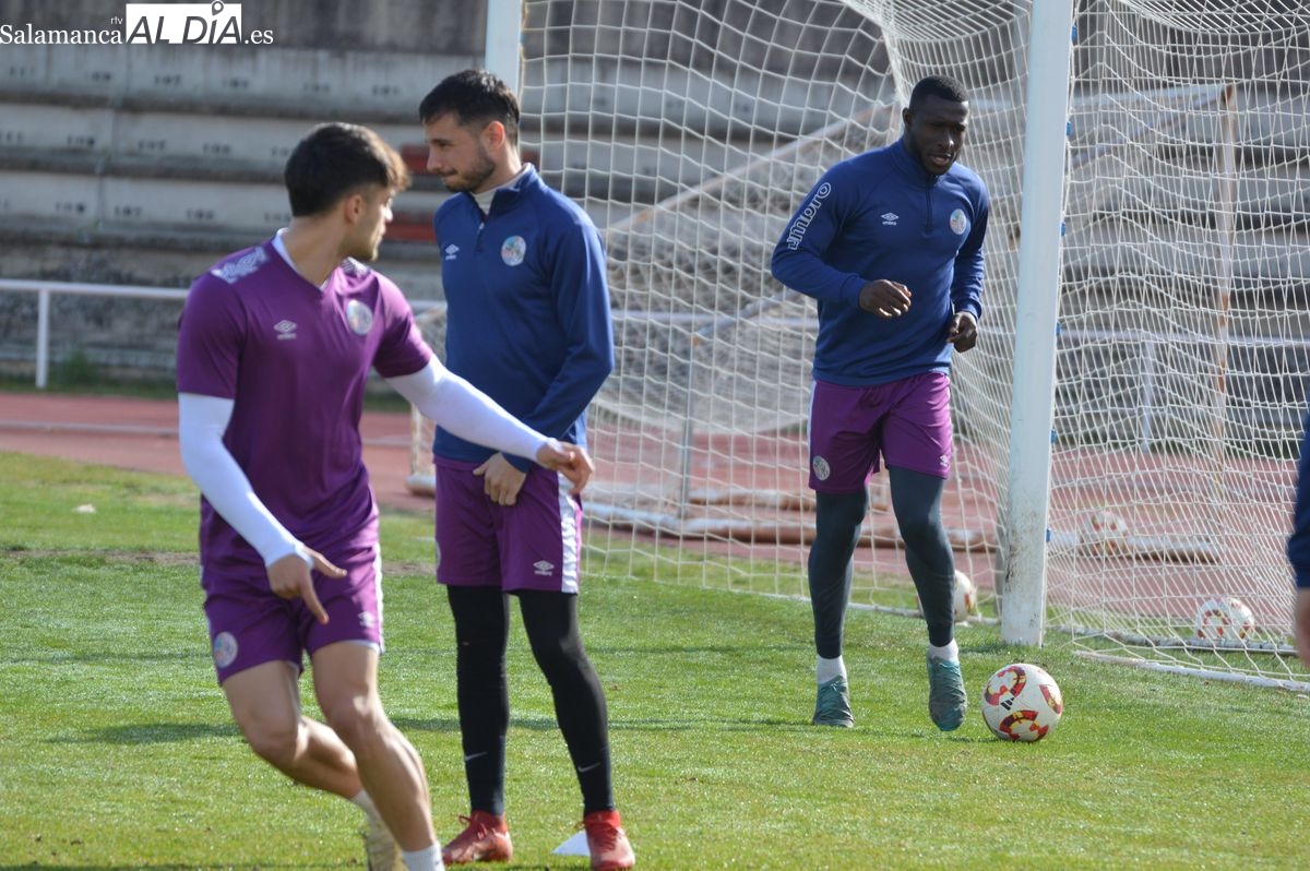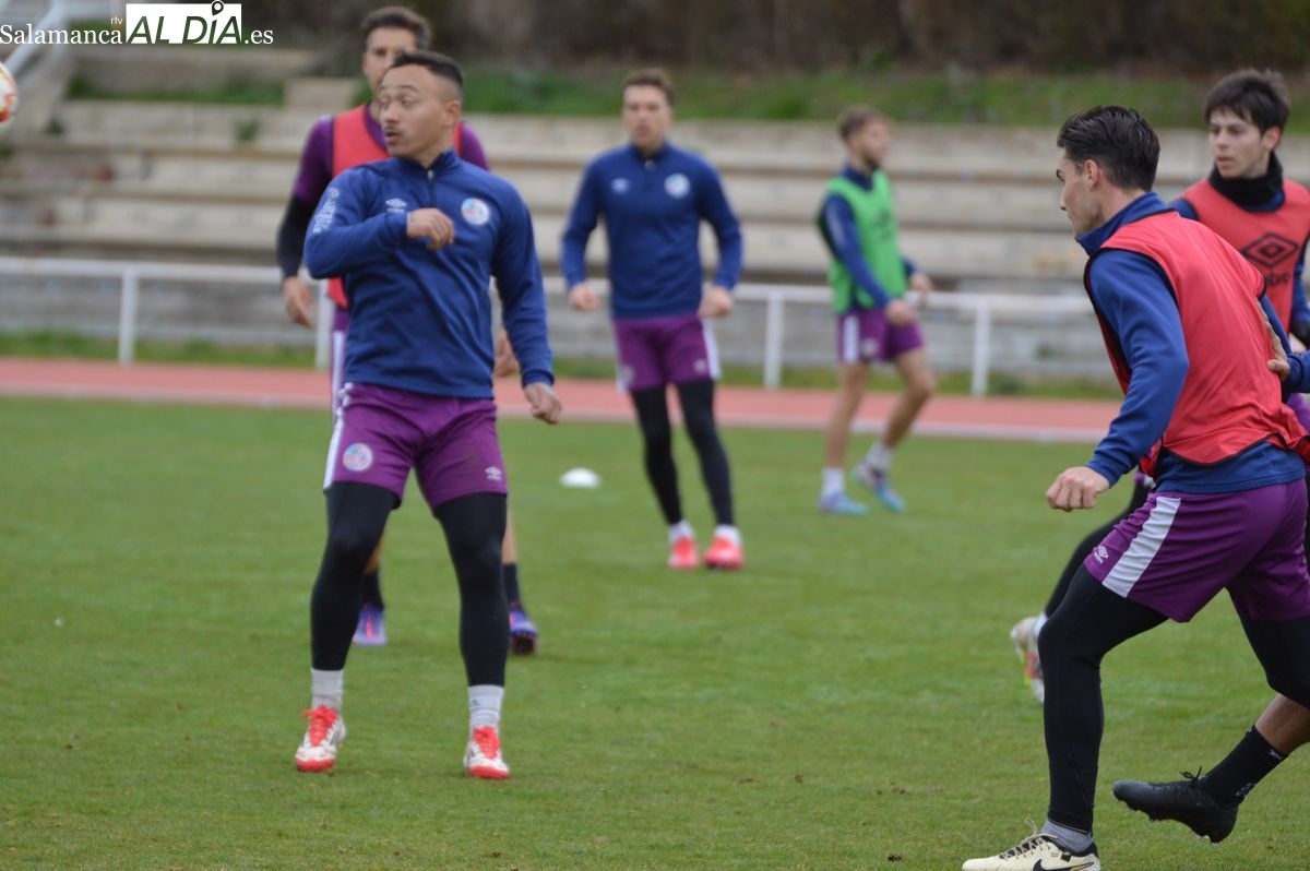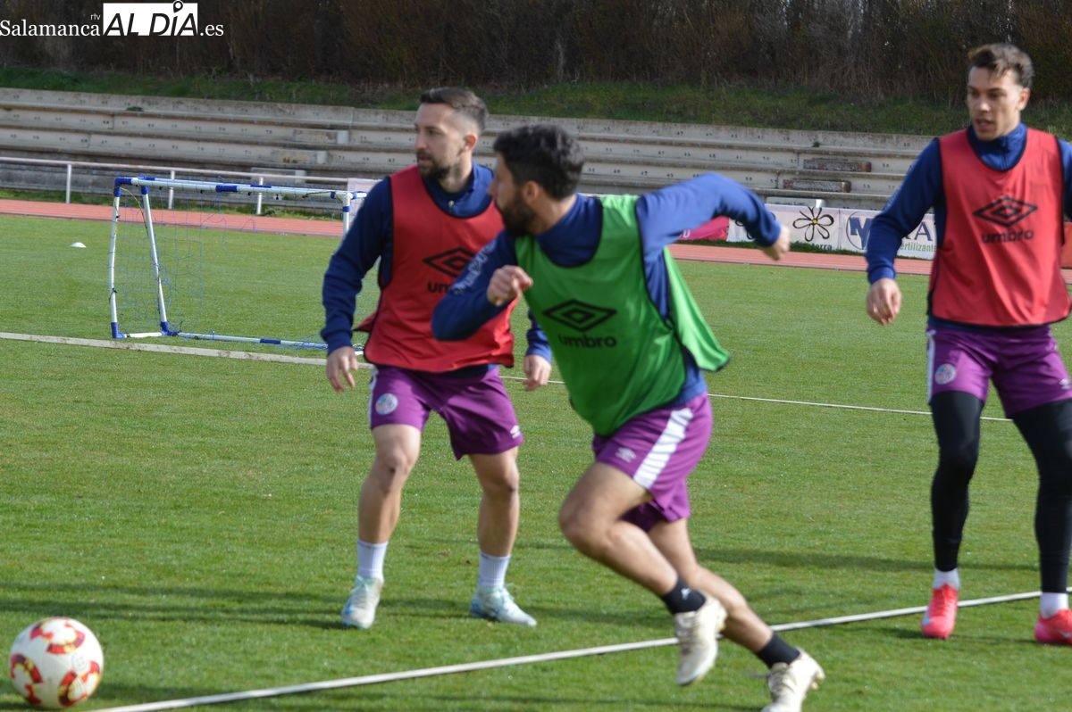 Dueñas ha ensayado con tres en el medio como posible opción para el partido en el Helmántico contra el Llanera. Asimismo, las bajas forzadas por sanción de Martín Galván, Loren y Emaná han abierto la puerta al cambio de esquema a través del trivote.