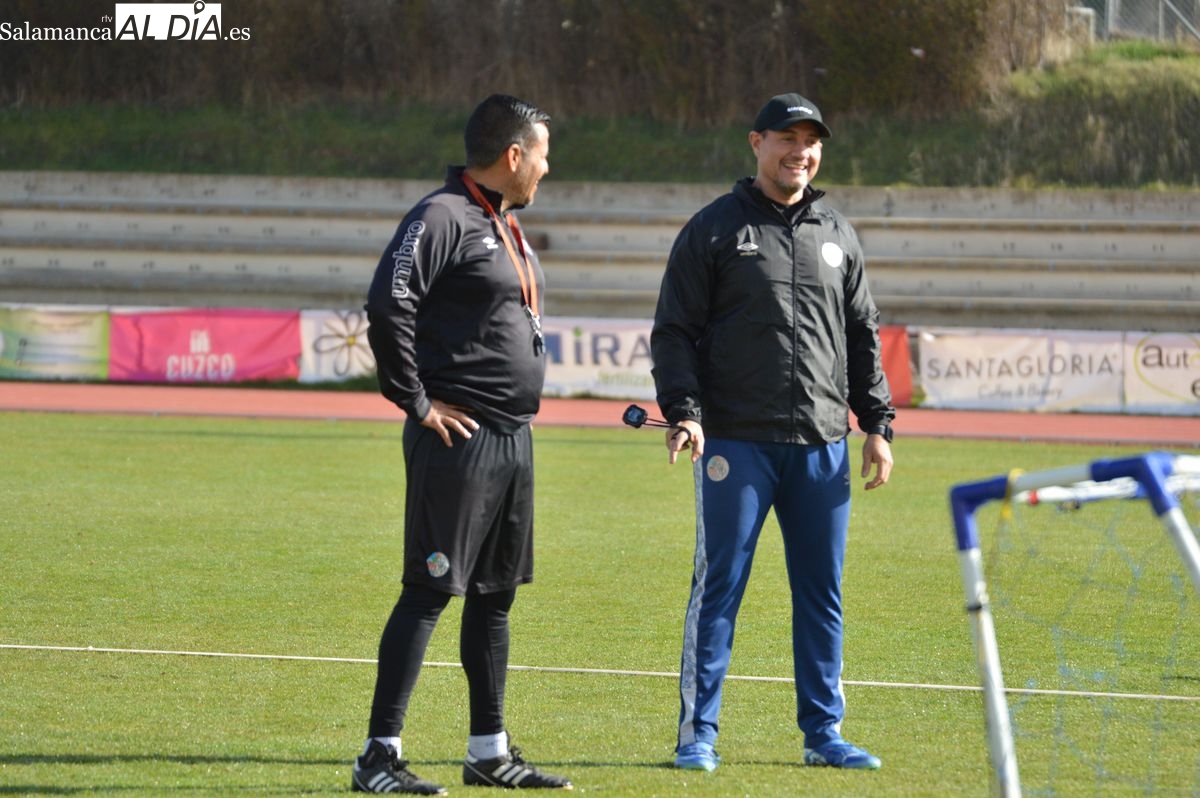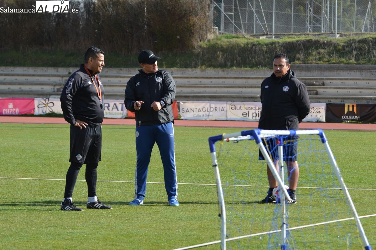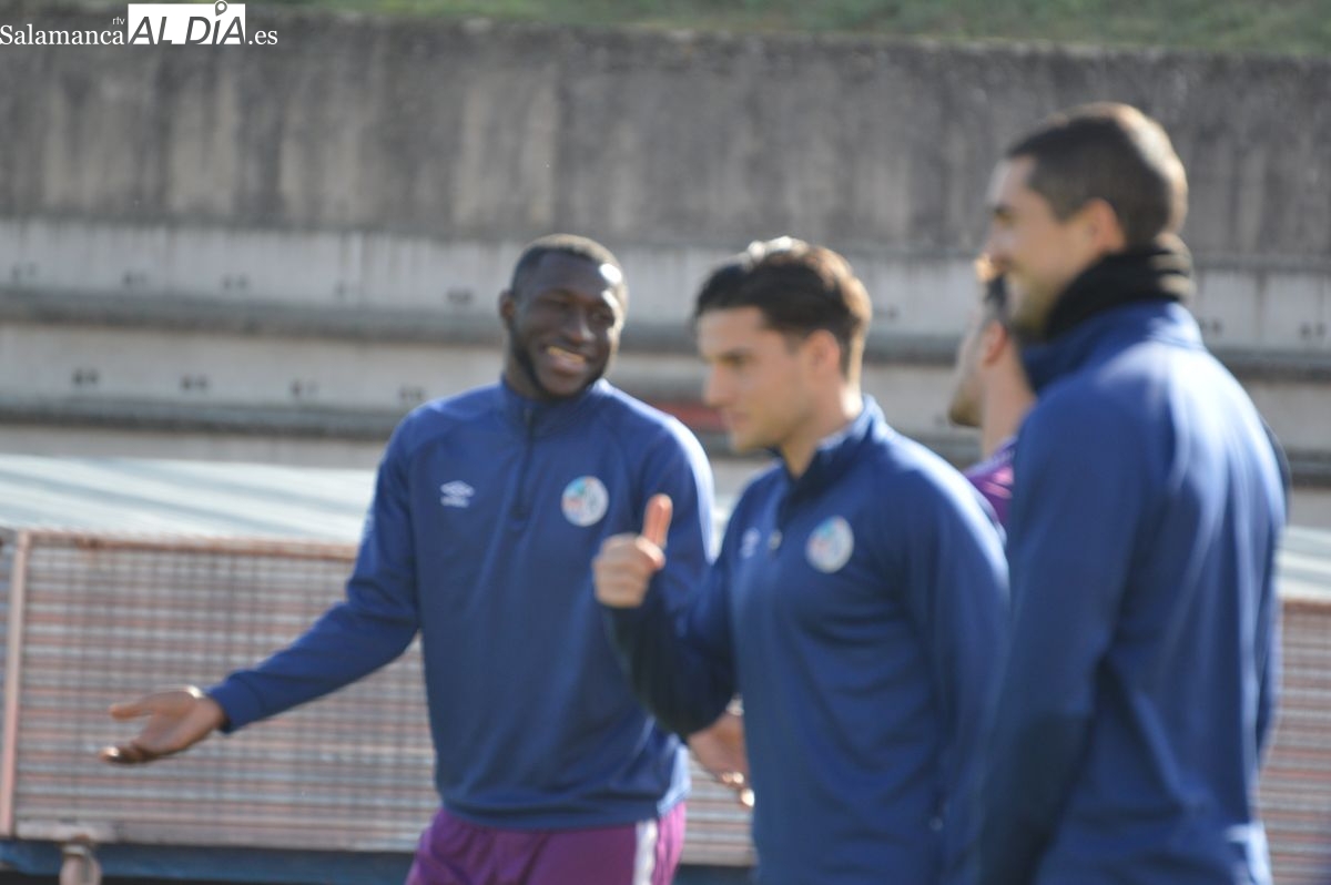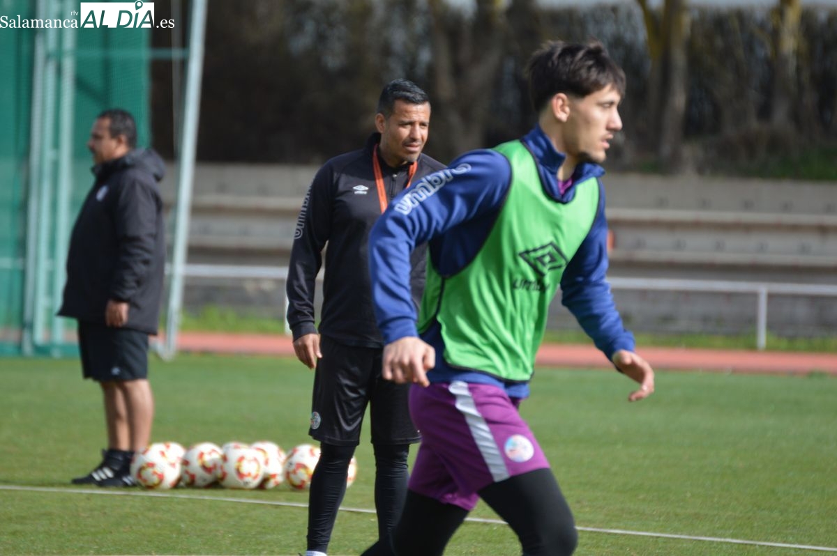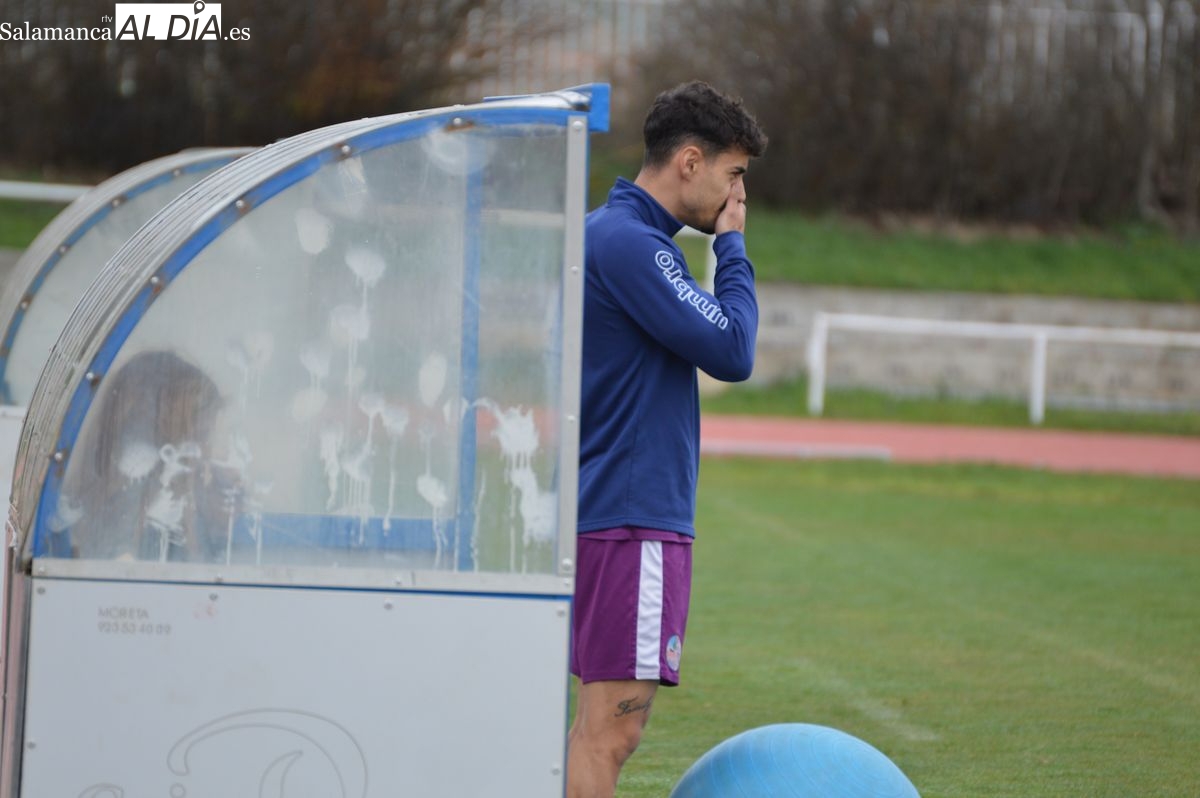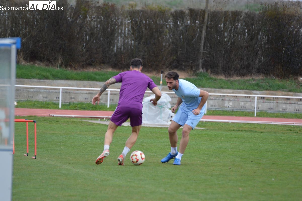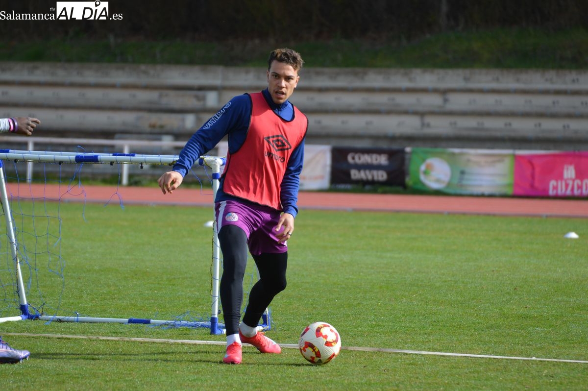 Dueñas ha ensayado con tres en el medio como posible opción para el partido en el Helmántico contra el Llanera. Asimismo, las bajas forzadas por sanción de Martín Galván, Loren y Emaná han abierto la puerta al cambio de esquema a través del trivote.