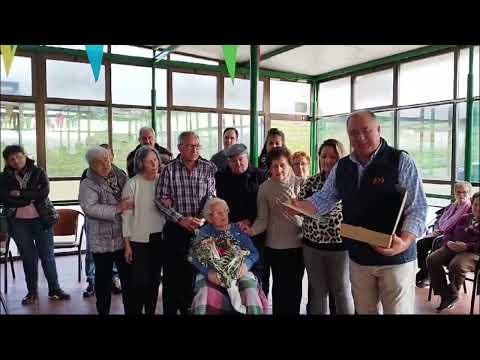 El alcalde de Villarino de los Aires, Julián Martín, en representación del Ayuntamiento, entregaba este jueves una placa a Mª Josefa Martín Benito con motivo de su llegada a los 100 años. El acto tenía lugar en la residencia municipal de mayores y a él asistían familiares de la centenaria llegados de Cabeza de Framontanos, localidad de la que es natural.