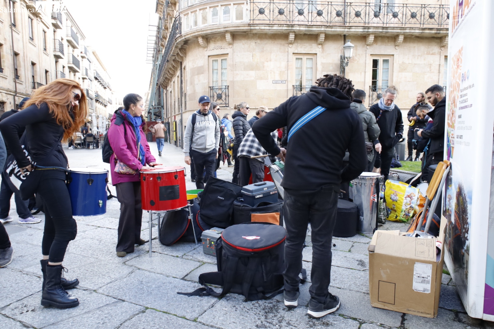 El espectáculo de batucada que se ha celebrado en la mañana de este sábado, 22 de febrero, en el centro de Salamanca ha sido todo un éxito.