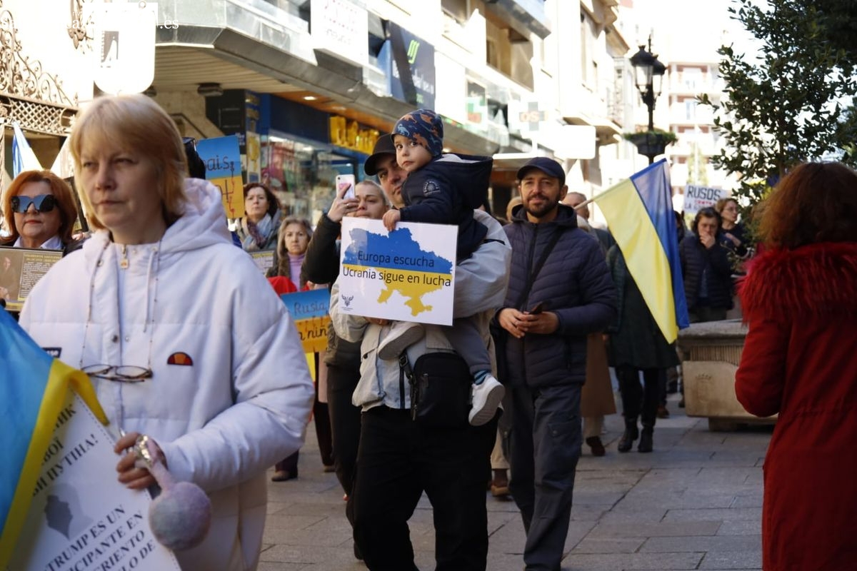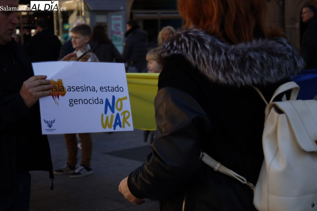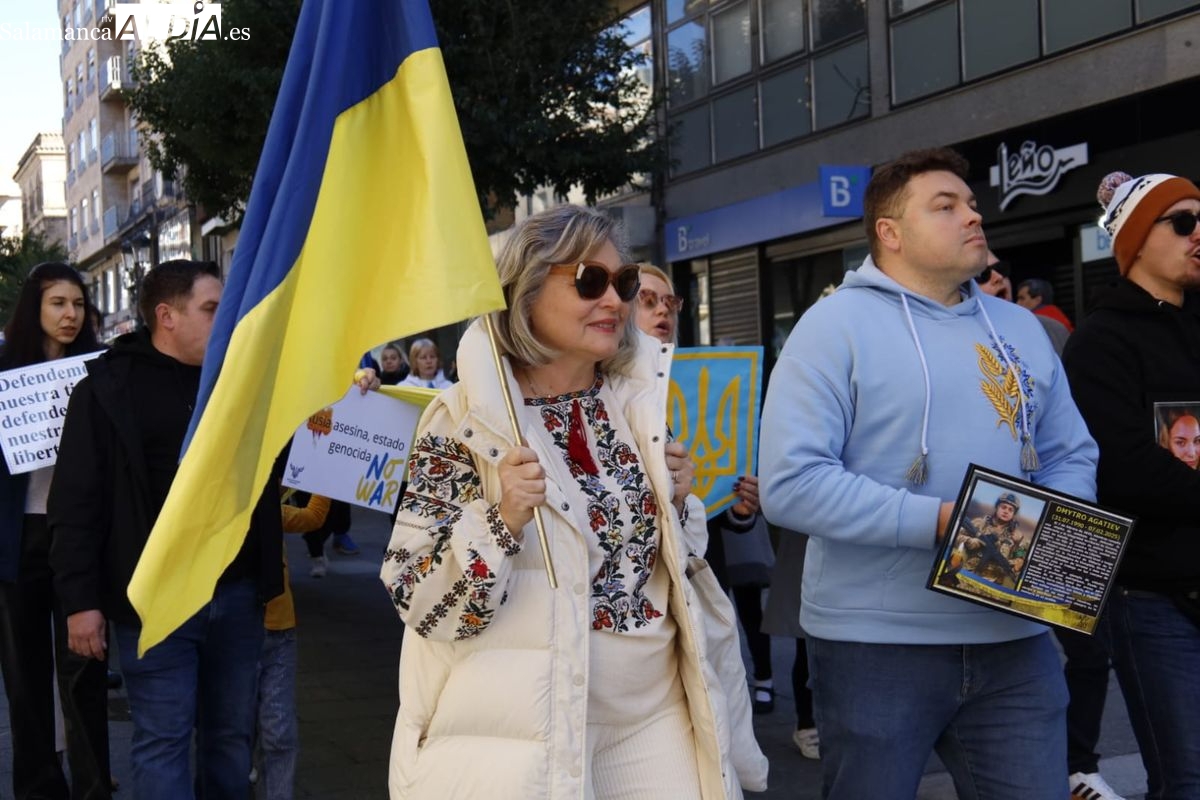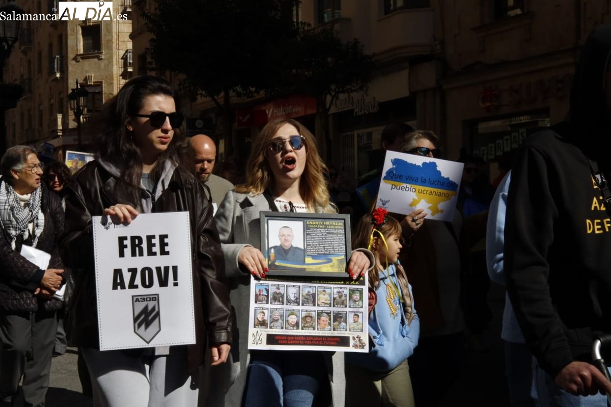 Salamanca sale a la calle en el tercer aniversario desde que estalló la guerra de Ucrania. Una marcha que ha comenzado en la Puerta Zamora y que ha bajado hasta la plaza de los Bandos.