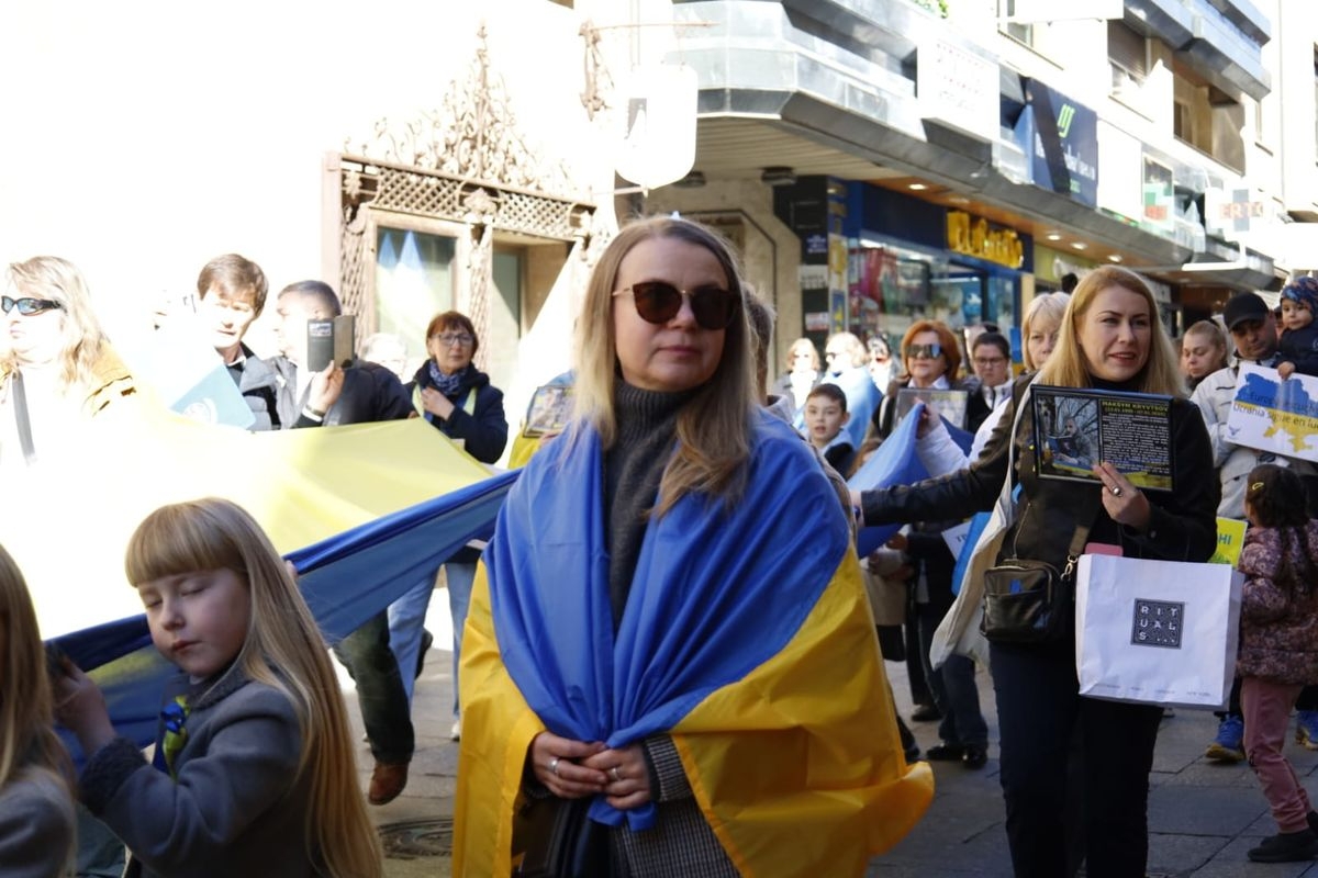 A través de pancartas con diferentes frases, como 'Por nuestros hijos, por nuetsra tierra, Ucrania libre', 'Free Azov' o 'La ayuda a Ucrania hoy, es la seguridad europea de mañana', han mostrado su rechazo al conflicto.
