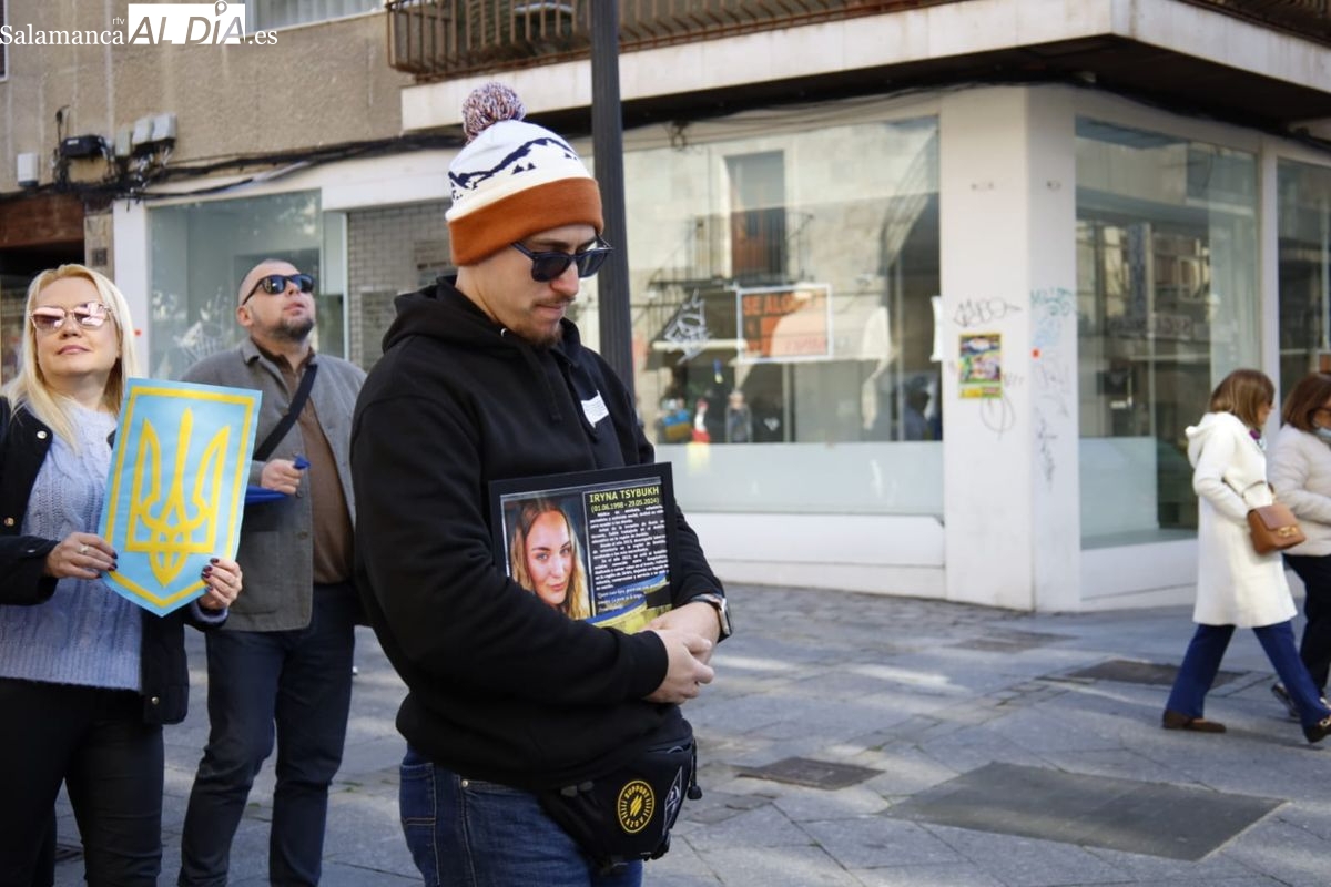 La iniciativa, organizada por la Asociación de Ucranianos de Salamanca, ha contado con el apoyo de vecinos de la ciudad que no han querido faltar a este acto. Junto a ellos ha estado la concejala de Relaciones Institucionales, Carmen Seguín.