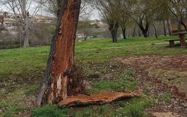 Un lector se ha puesto en contacto con Ciudad Rodrigo Al Día para alertar del mal estado en el que se encuentra un árbol de notorias dimensiones situado en la isla de El Picón de Ciudad Rodrigo, en las inmediaciones de la gran piedra que incluye la placa de homenaje a Pesetos y de uno de los extremos de la presa de La Pesquera.