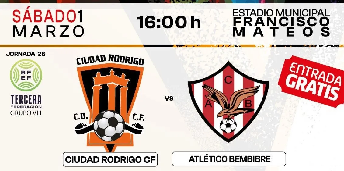 En este encuentro (perteneciente a la Jornada 26 de 3ª Federación) el Ciudad Rodrigo se medirá a un rival totalmente directo en la lucha por la salvación, el Atlético Bembibre, que a día de hoy está dos puntos por detrás de los mirobrigenses en la tabla clasificatoria.