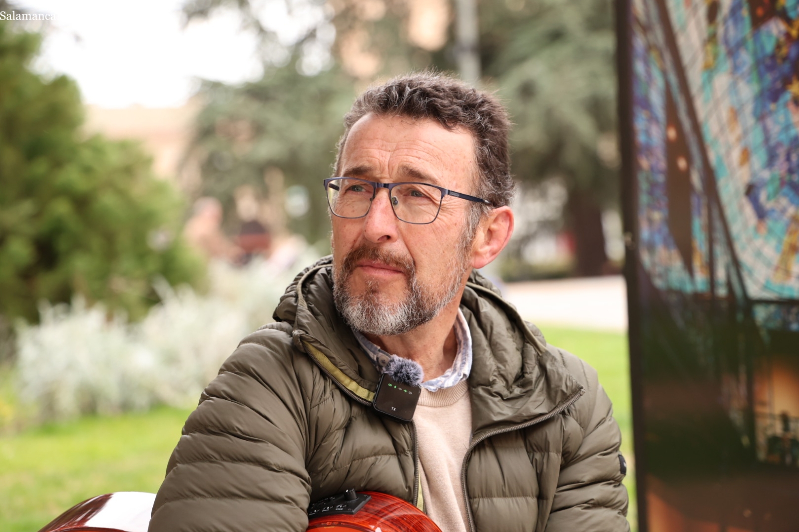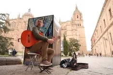 Lleva casi dos décadas ofreciendo su música en este emblemático espacio del casco histórico. "Tengo historias para escribir un libro", manifiesta este salmantino